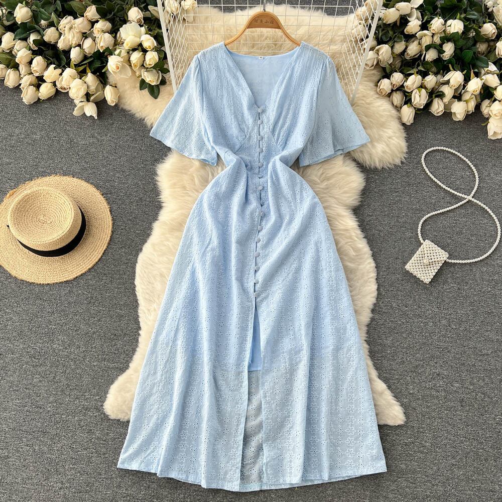 フランスのレトロなスリムフィットとスリムなVネックコートスタイルのハイウエストロングスカート2022年の新しいサマードレストレンド ハイウェスト 夏物 lyxaj44366849379