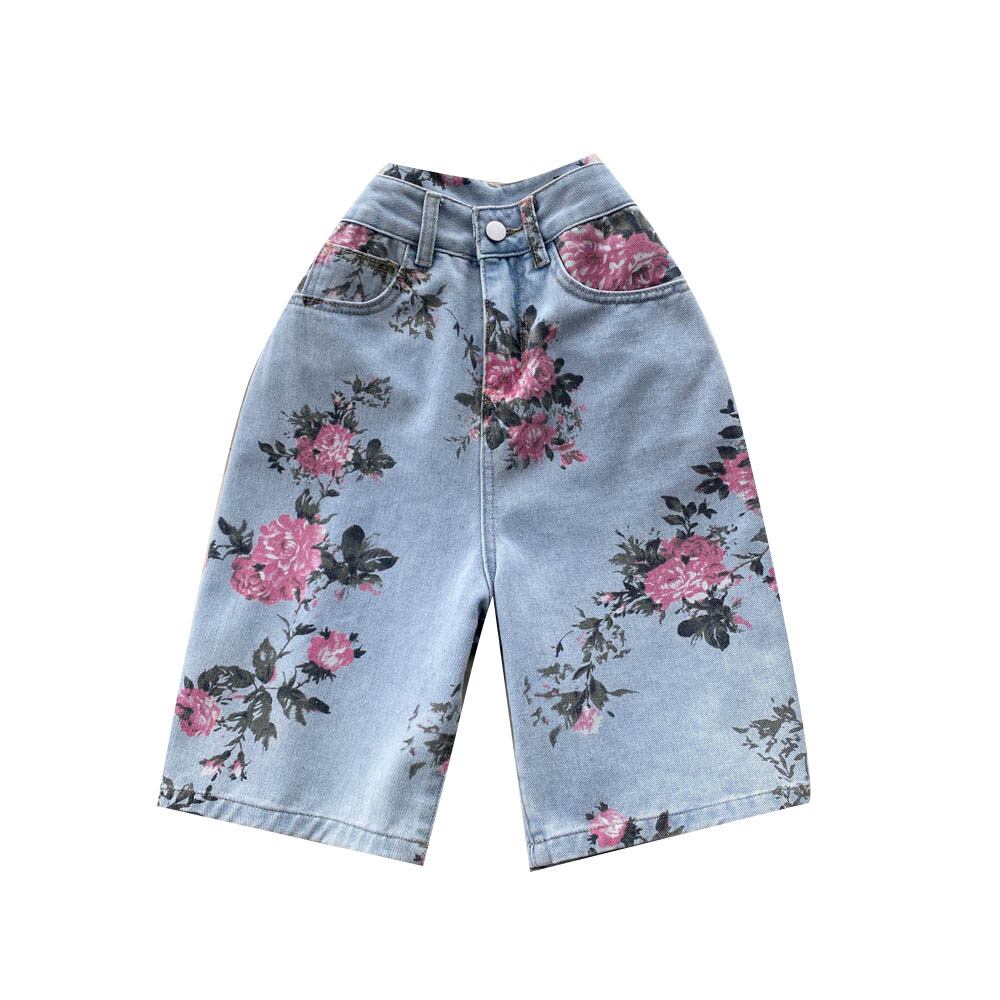 夏の新作甘くてスパイシーな女の子ローズデニム5点パンツデザインハイウエストドレープワイドレッグパンツルーズショーツ ハイウェスト 大人ガーリー スウィート キュート カジュアル サマー 夏物 ブルマー ワイドパンツ lyxaj91965379891