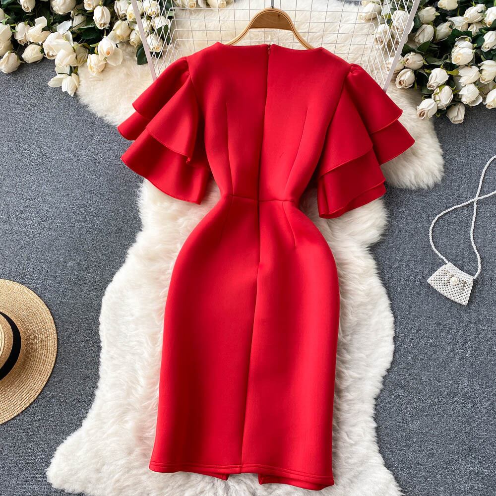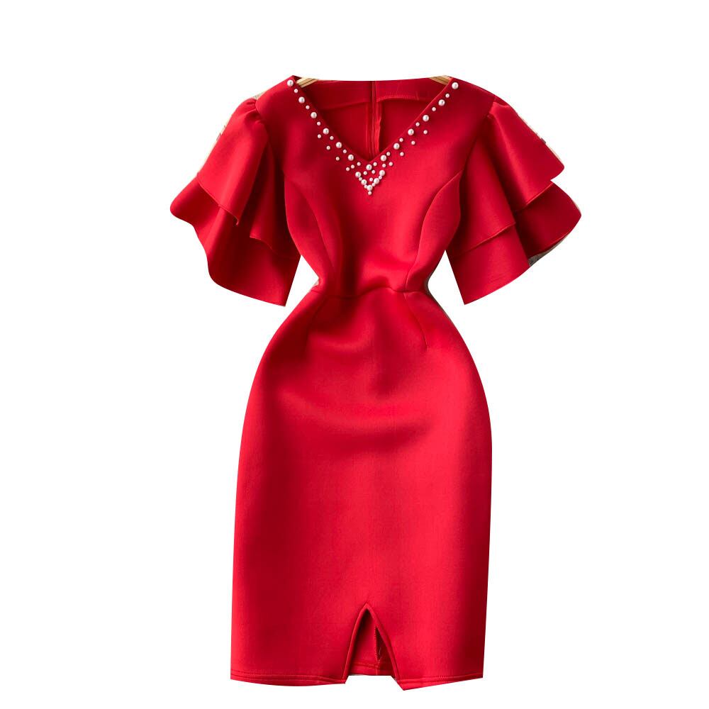 ファッショナブルな気質名女神ファン気質薄手のドレスサマードレス新しいVネックビーズバッグヒップスプリットスカートトレンディ 夏物 lyxaj34681849193