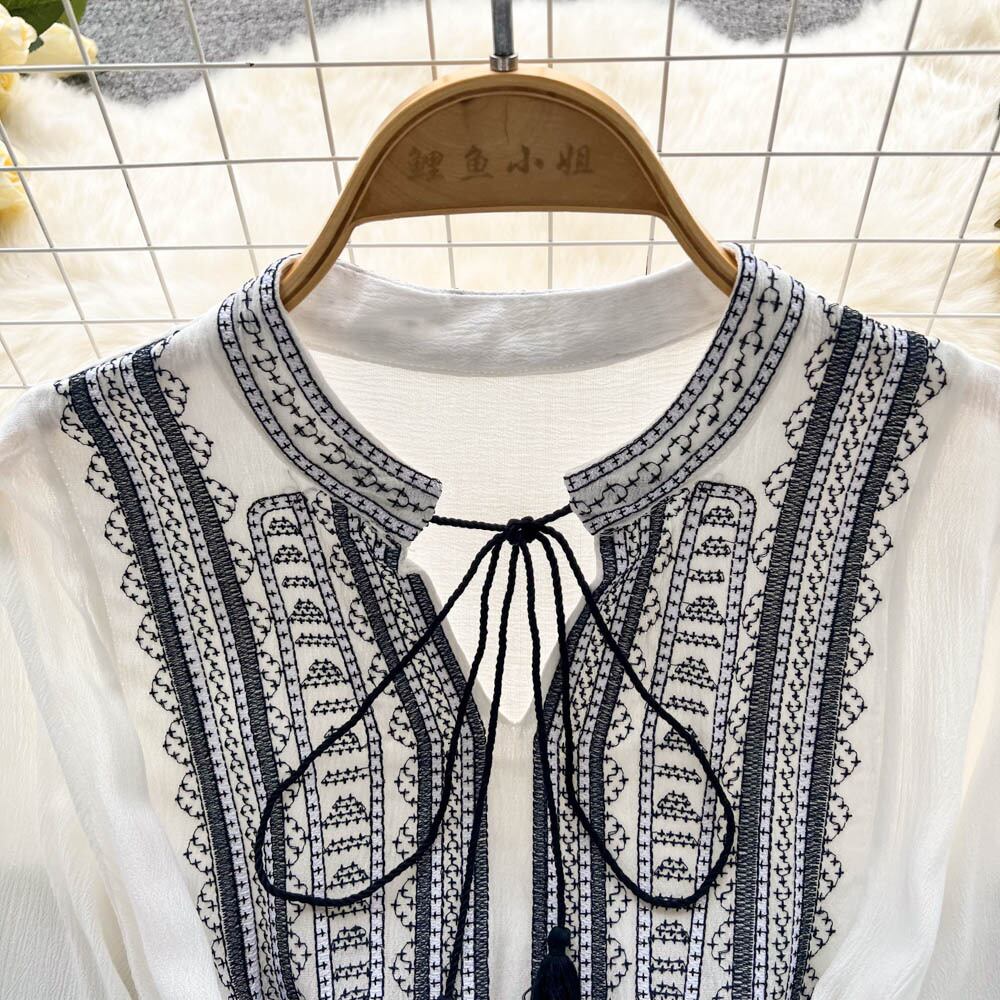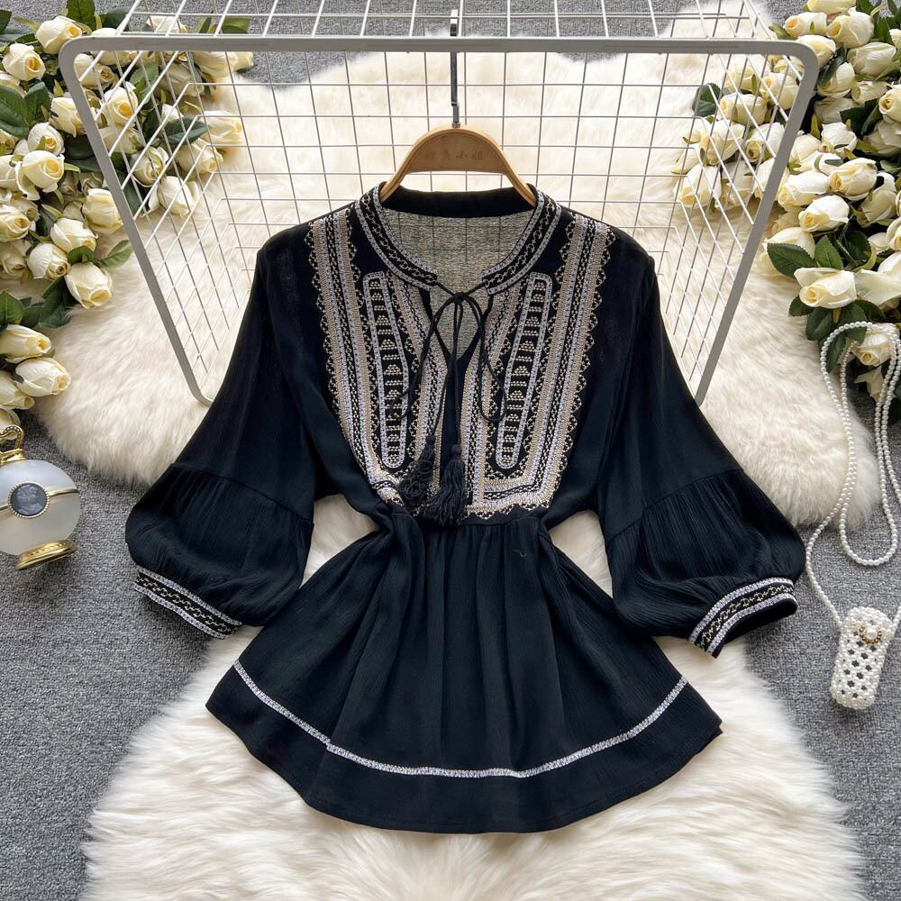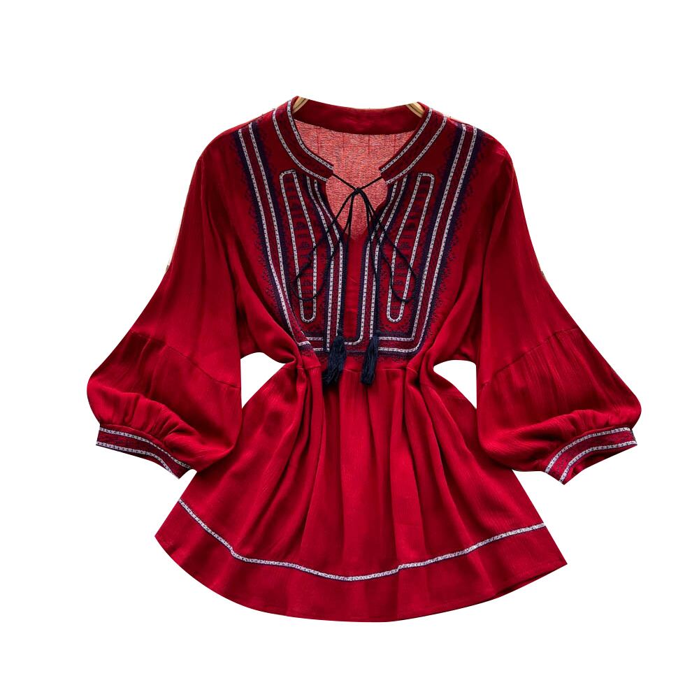 ボヘミアンナショナルスタイルの重工業刺繍タッセルレースコットンとリネンのベビーシャツトップレトロな女性のウエスタンスタイルのシャツ lyxaj86746353914
