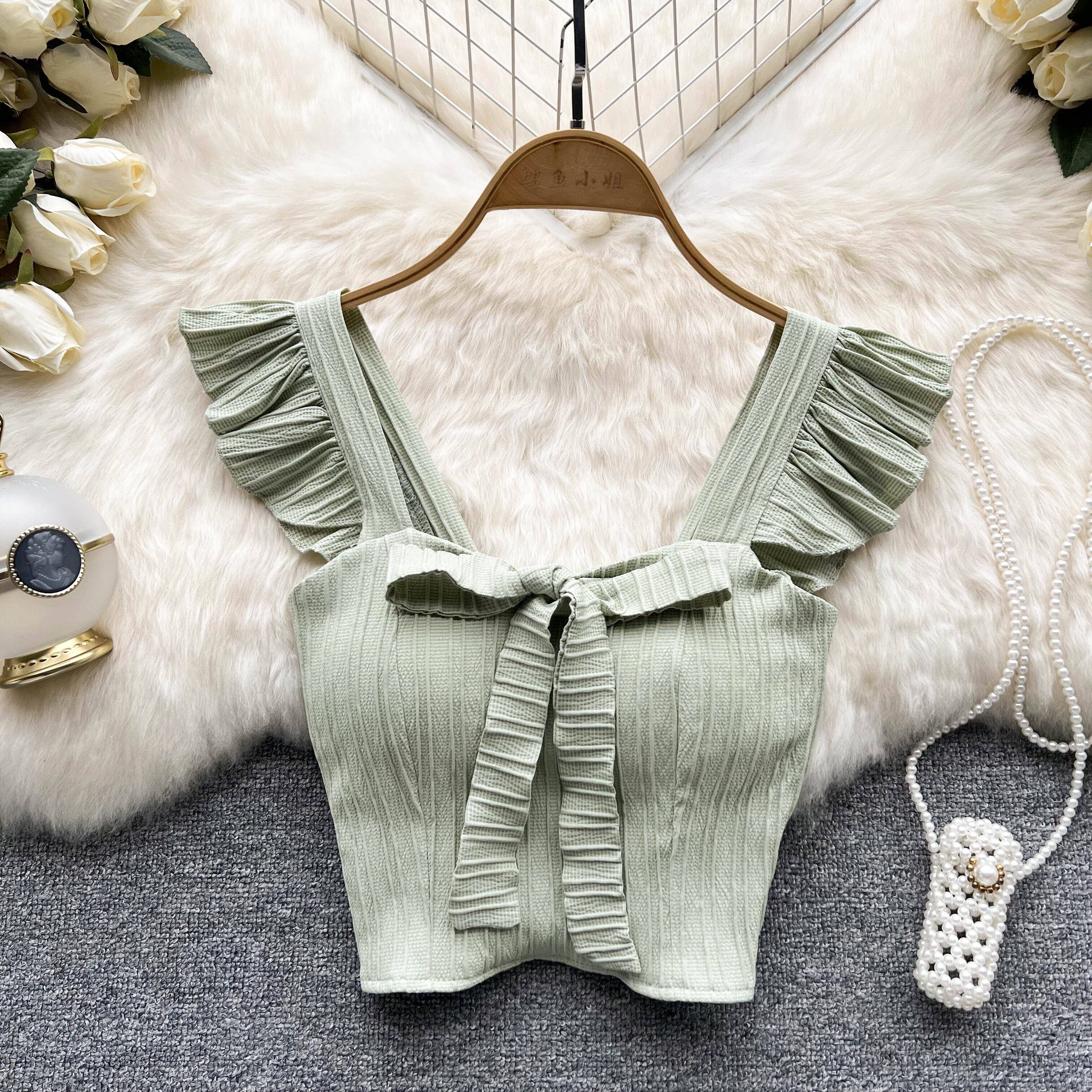 夏の新しいフランスのレトロなファッショナブルなキャミソールの女性のアウターウェアノースリーブのセクシーな甘いホットな女の子のショートトップトレンディ 大人ガーリー スウィート キュート カジュアル サマー 夏物 lyxaj64967816161