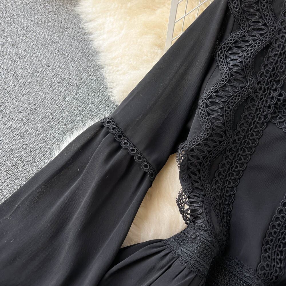 Spring new French style light and mature style lace stitching long skirt women are thin and high-end V-neck large swing loose dress ロング レース スプリング 春物 スカート Vネック ステッチ lyxaj61556268444