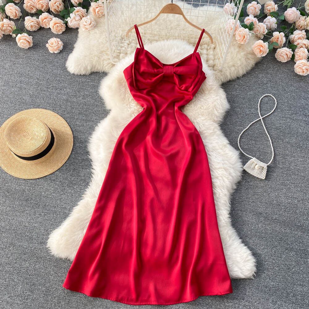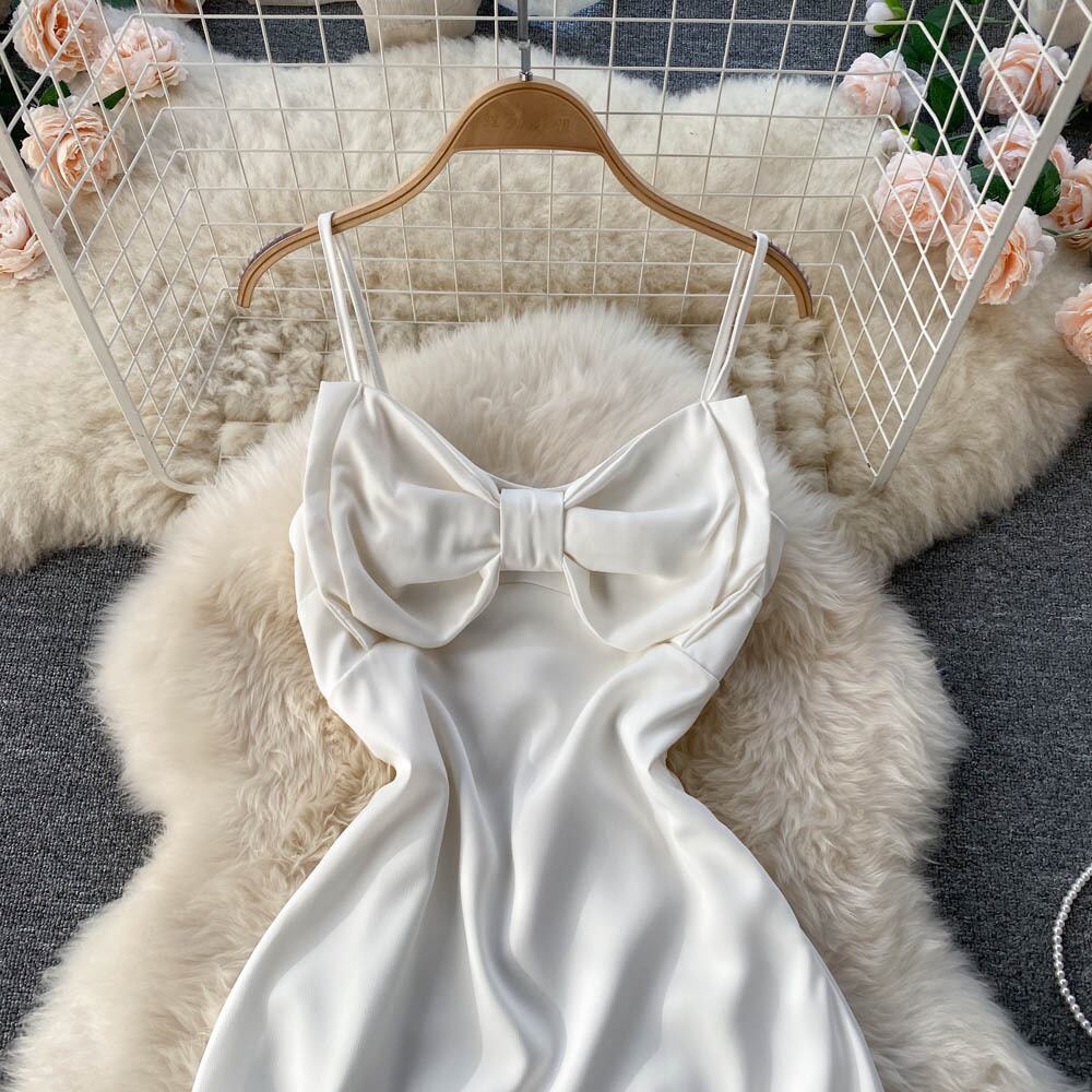 エレガントな気質、スリムで薄い、背中の開いた、大きなスイング、大きな弓、サスペンダードレス、宴会、有名人、ドレススカートを主宰 リボン lyxaj10023357932