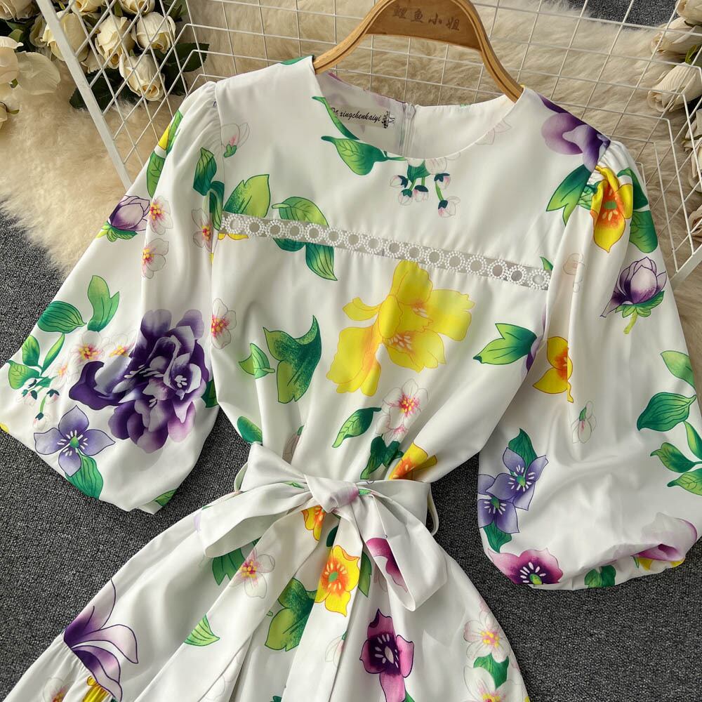 優しいスタイルのフレンチファーストラブホワイトプリントドレス2022年夏新しいスーパーフェアリースウィートエイジリデューシングフェアリースカート 大人ガーリー キュート カジュアル サマー 夏物 lyxaj68104519568