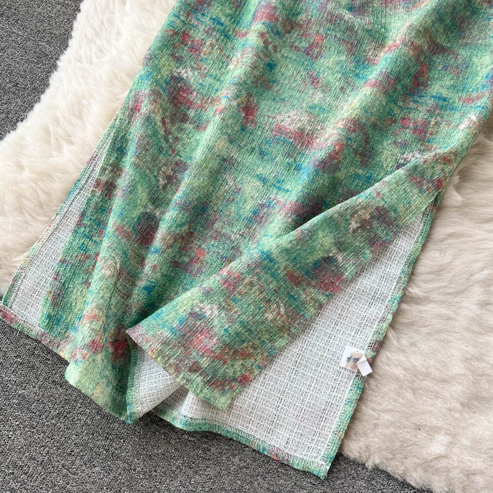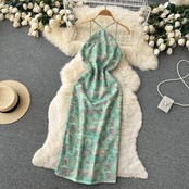 セクシーな純粋な欲望ホットガールフローラルホルターサスペンダードレス女性の夏の新しい短い穏やかな風ウエストバッグヒップスカート ショート サマー 夏物 花柄 ピュア lyxaj81845111083