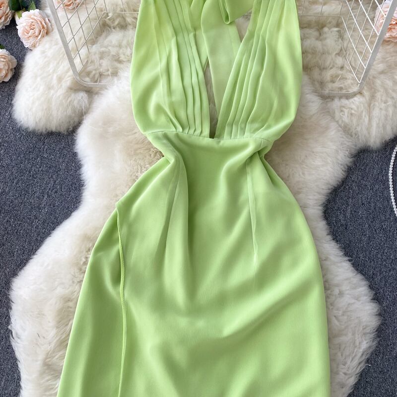 セクシーなホルターネックドレス、女性のセクシーなスプリット、2022年夏の新しいウエスト、女性の気質、Vネックのバックレスドレス ロング サマー 夏物 lyxaj50507692138