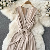 夏のファッションセレブ気質Vネックノースリーブジャンプスーツウエストは細く、足の広いジャンプスーツパンツは細くて超妖精 サマー 夏物 lyxaj3942725383