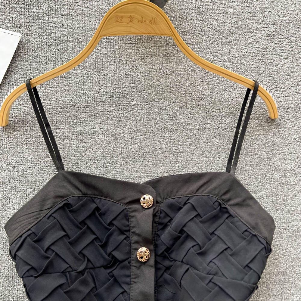 フレンチレトロデザインセンスニッチキャミソールレディースサマーアウターラップチェストセクシーショートタイトフィットトップ 夏物 lyxaj35912743365
