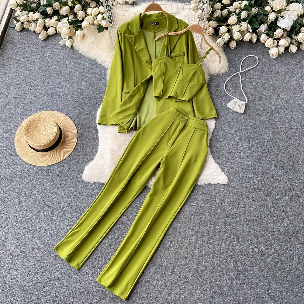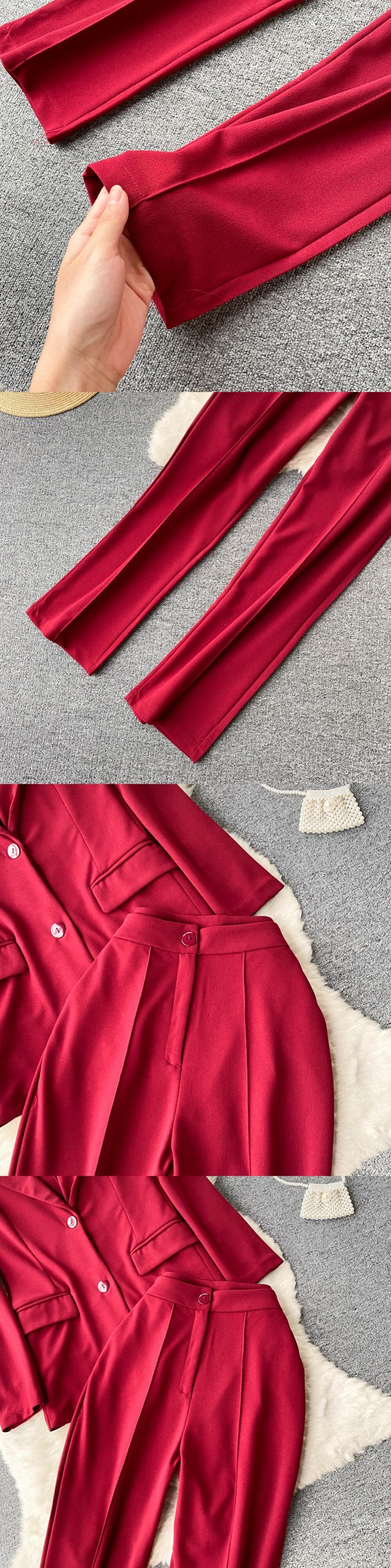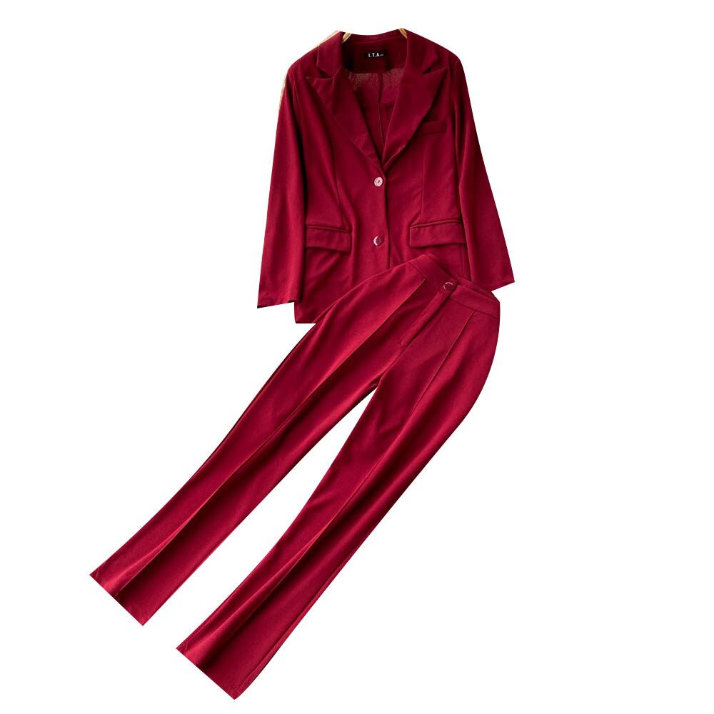 プロOLスーツラペル長袖ウエストスーツルーズトップ+ストレートチューブスリムカジュアルスーツパンツツーピースセット ロング lyxaj73295827662