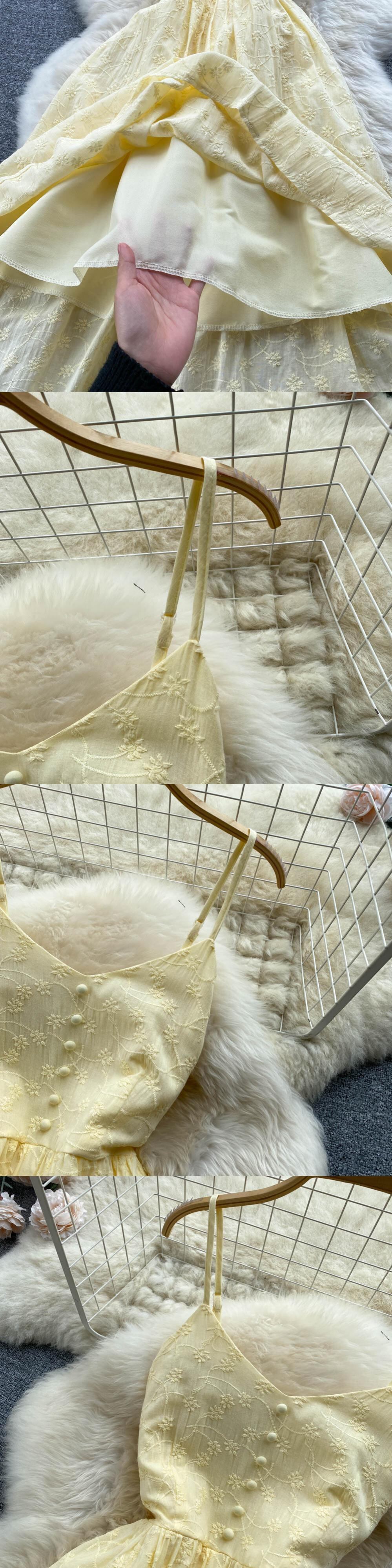 甘い気質のサスペンダースカート、スクエアネック、オフショルダー、ウエスト、薄いフレンチニッチの優しい風メッシュジャカードドレス 大人ガーリー スウィート キュート カジュアル スクウェア lyxaj18555685137