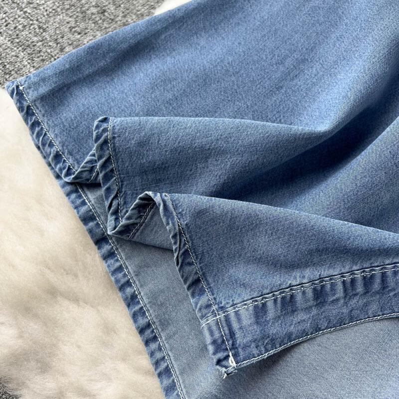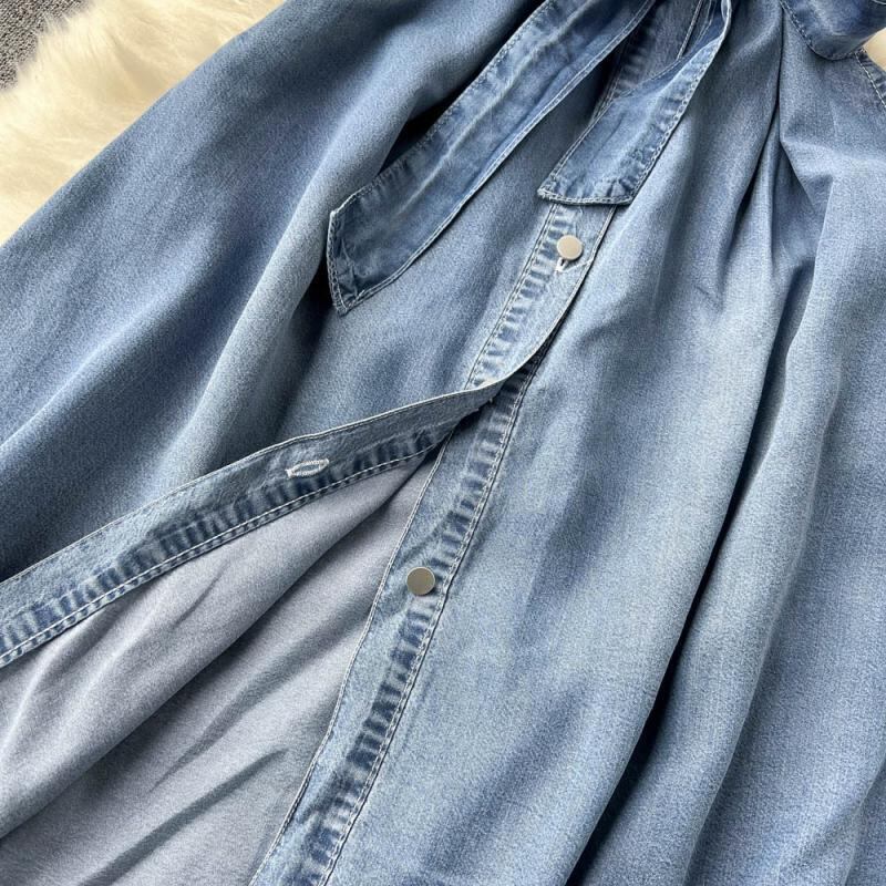 2022年夏の新しいレトロラペルステッチストラップウエストとスリムノースリーブシングルブレストデニムAラインドレス サマー 夏物 lyxaj6872592680