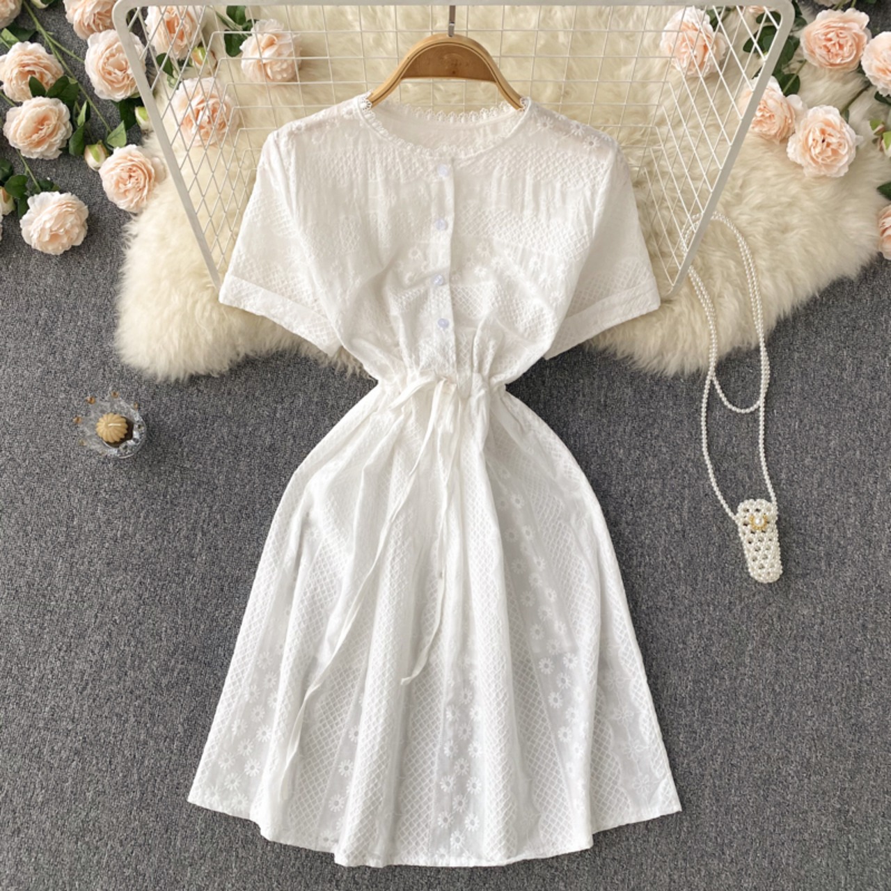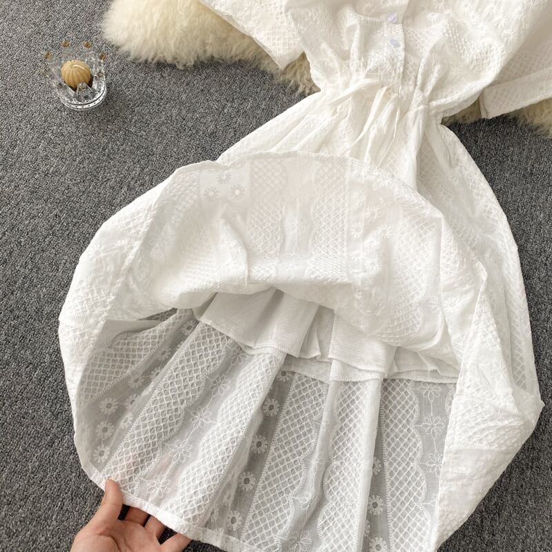 フランスのニッチなデザインセンスの甘い初恋の妖精のスカートのウエストは薄い白い気質ストラップ半袖ドレストレンディです ホワイト 大人ガーリー スウィート キュート カジュアル lyxaj9041822054