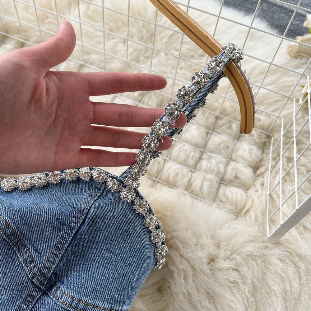 セレブ気質ダイヤモンドをちりばめたキャミソールデニムスーツ女性夏韓国版年齢を減らすハイウエストスプリットスカートツーピース サマー 夏物 lyxaj50218528147