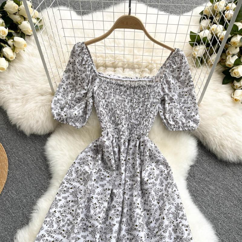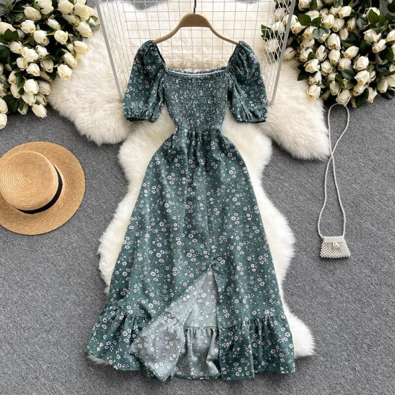 フローラルドレスレディース2021年新しいフレンチスクエアネックパフスリーブウエストとスリムなデザイン 花柄 スクウェア lyxaj80254242649