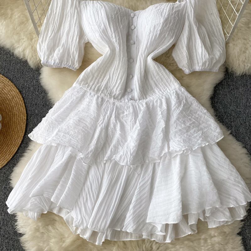 ガーリーでエレガントな気質のチューブトップドレス夏の新しいスリムフィットと薄いスーパーフェアリーロータスリーフAラインケーキスカート サマー 夏物 lyxaj99310536860