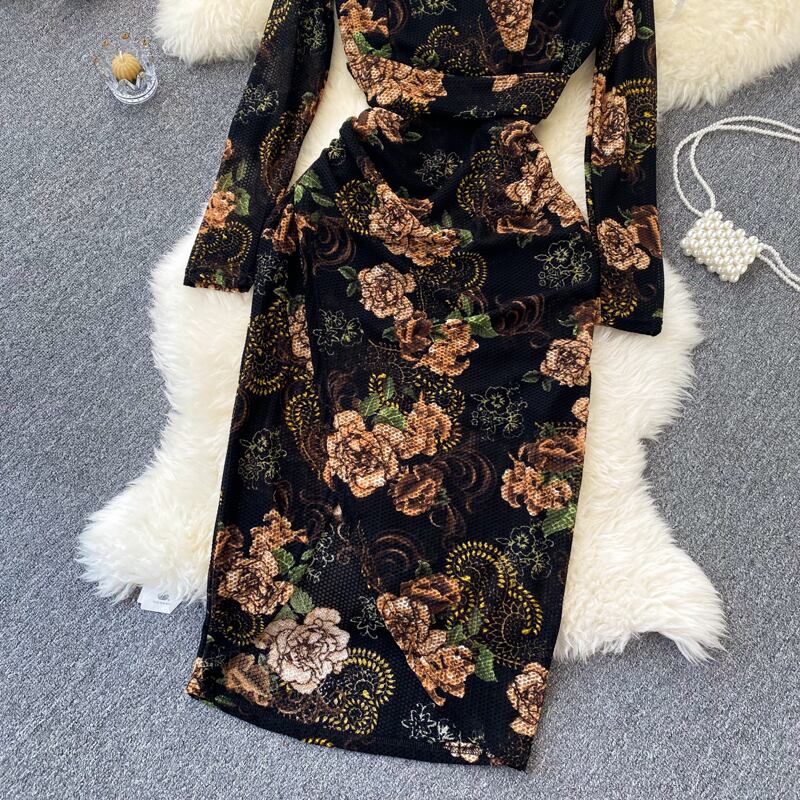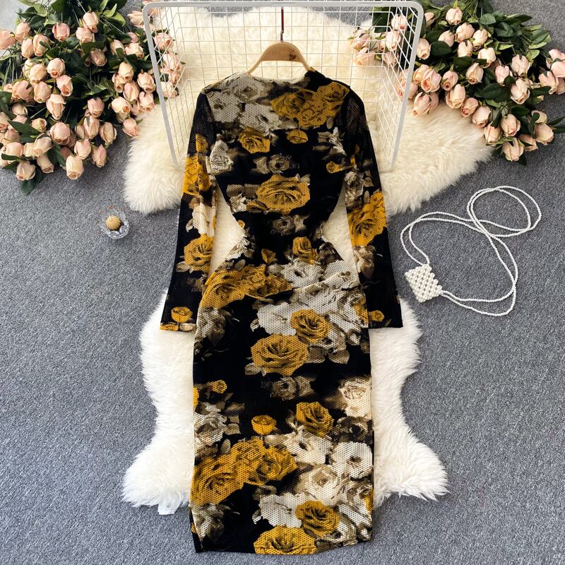 2022年新女神ファンVネックセクシー半袖伸縮性ウエストバッグヒップスカートプリーツメッシュプリントワンピース エラスティック lyxaj69039440572