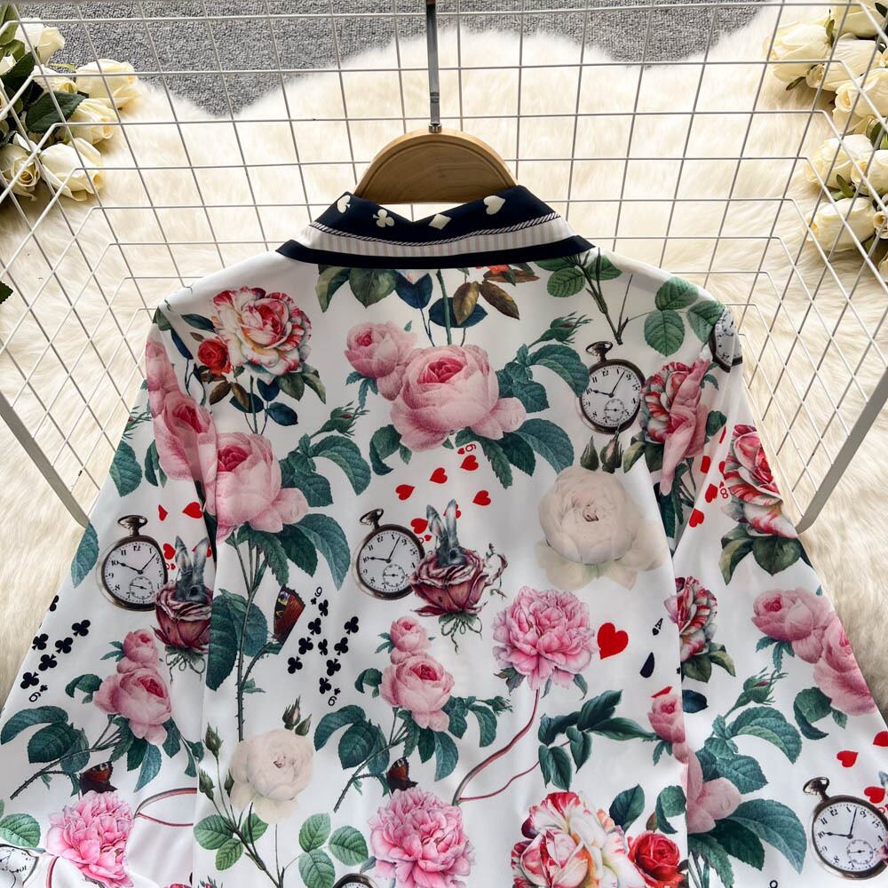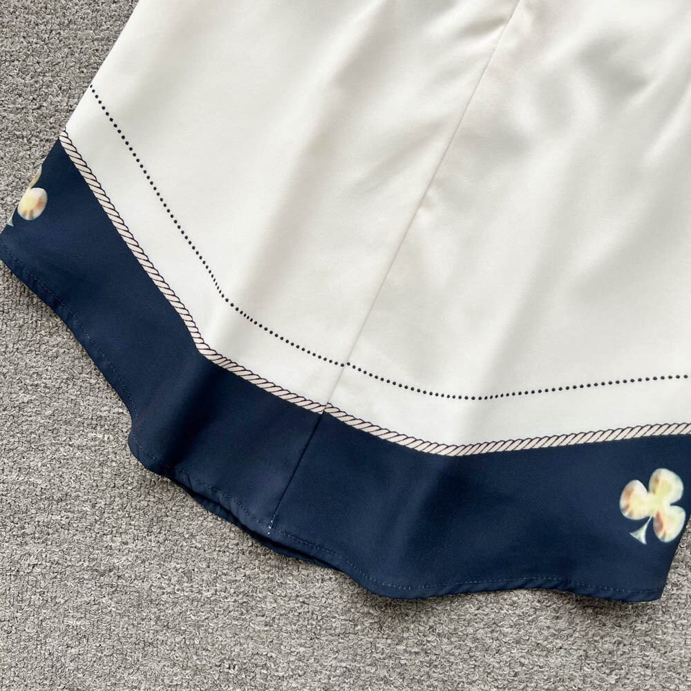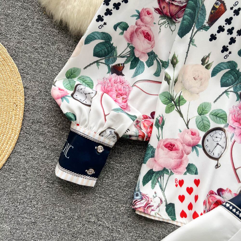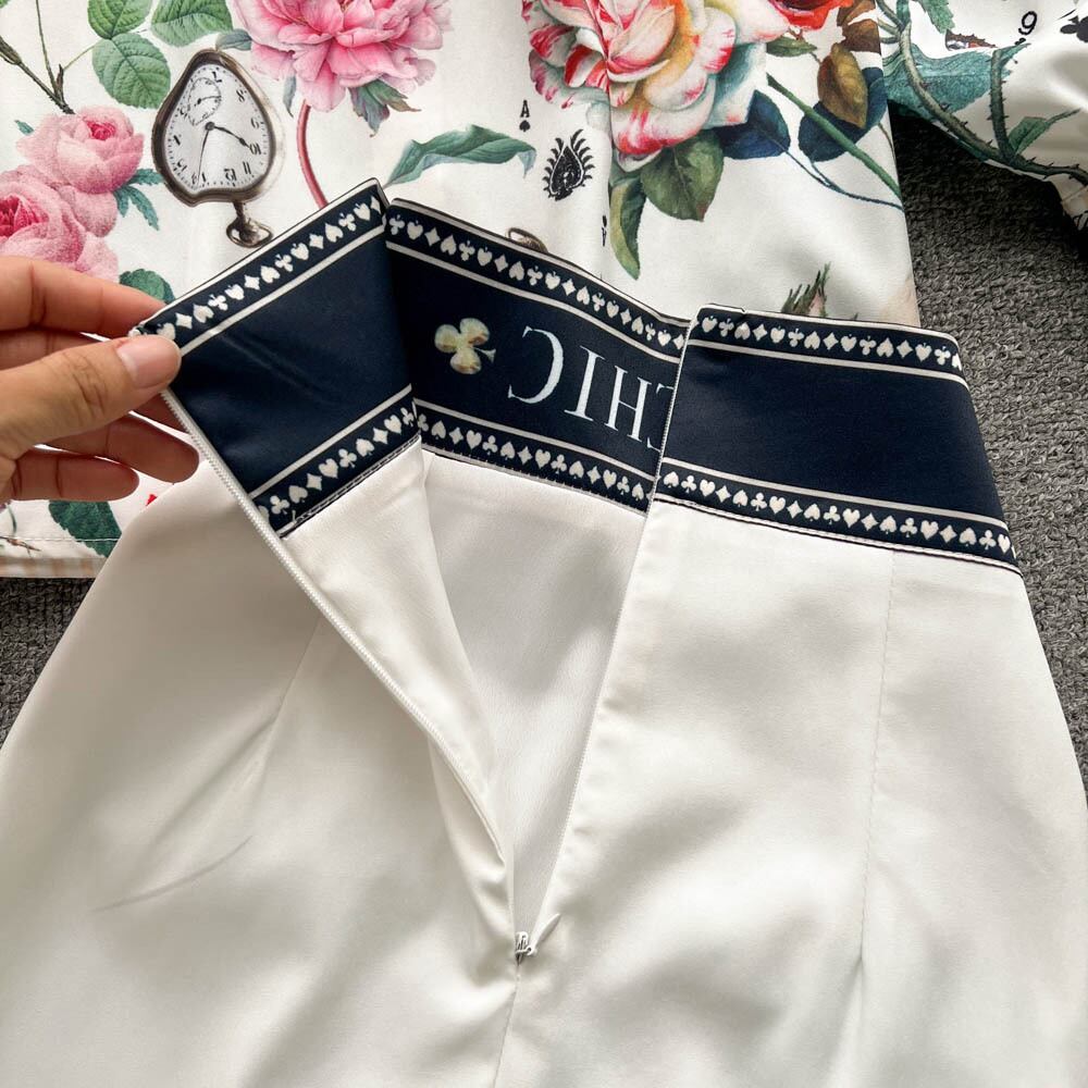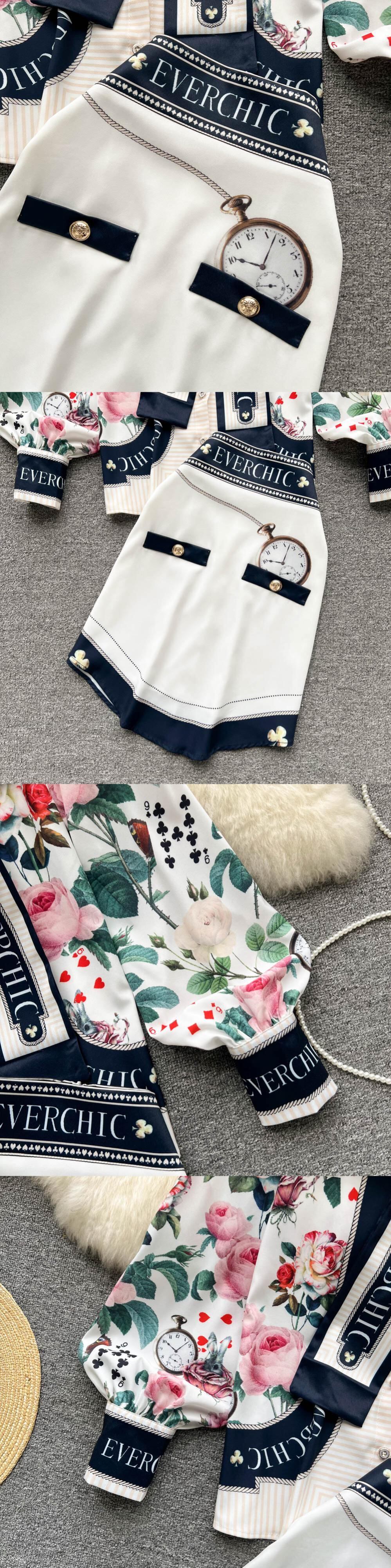 新しい小さなフレグランスプリントヨーロッパとアメリカのインスーツ蝶ネクタイ長袖シャツ+不規則なスカートツーピースセット ロング リボン ヨーロピアン lyxaj65760746610