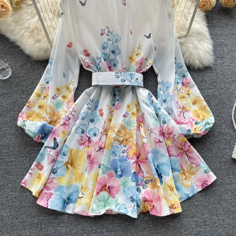 2022年夏の新しい甘いフレンチレトロウエストミドル丈プリンセスドレススリム初恋パフスリーブドレス 大人ガーリー スウィート キュート カジュアル サマー 夏物 lyxaj86415462340