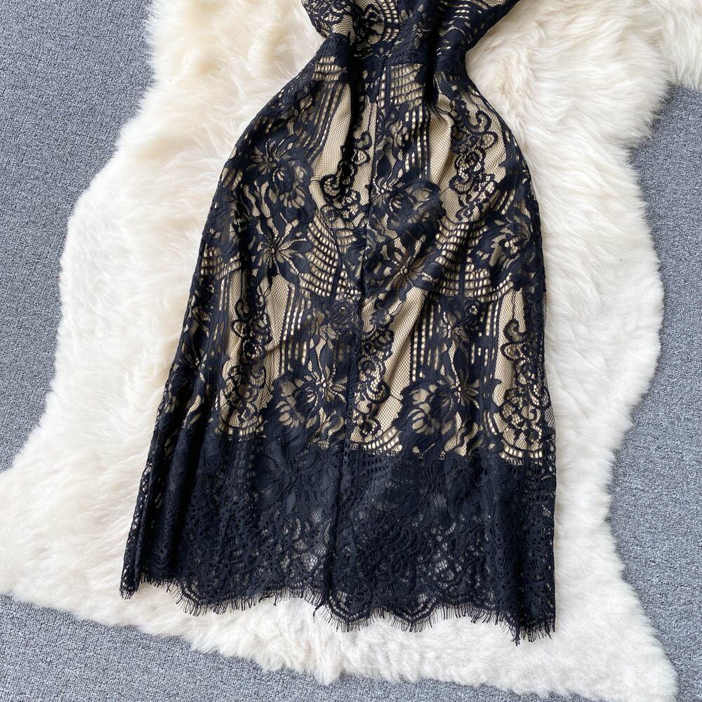 夏の新しい純粋な欲望スタイルセクシーな背中の開いたサスペンダーレース中空ドレス女性のジッパーハイウエストレトロドレス ハイウェスト サマー 夏物 ピュア lyxaj30775144494