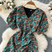 フレンチライトおなじみスタイルVネック長袖フローラルドレスフィッシュテールスカートライトラグジュアリーデザイン気質シックスカート ロング 花柄 lyxaj86444200365