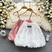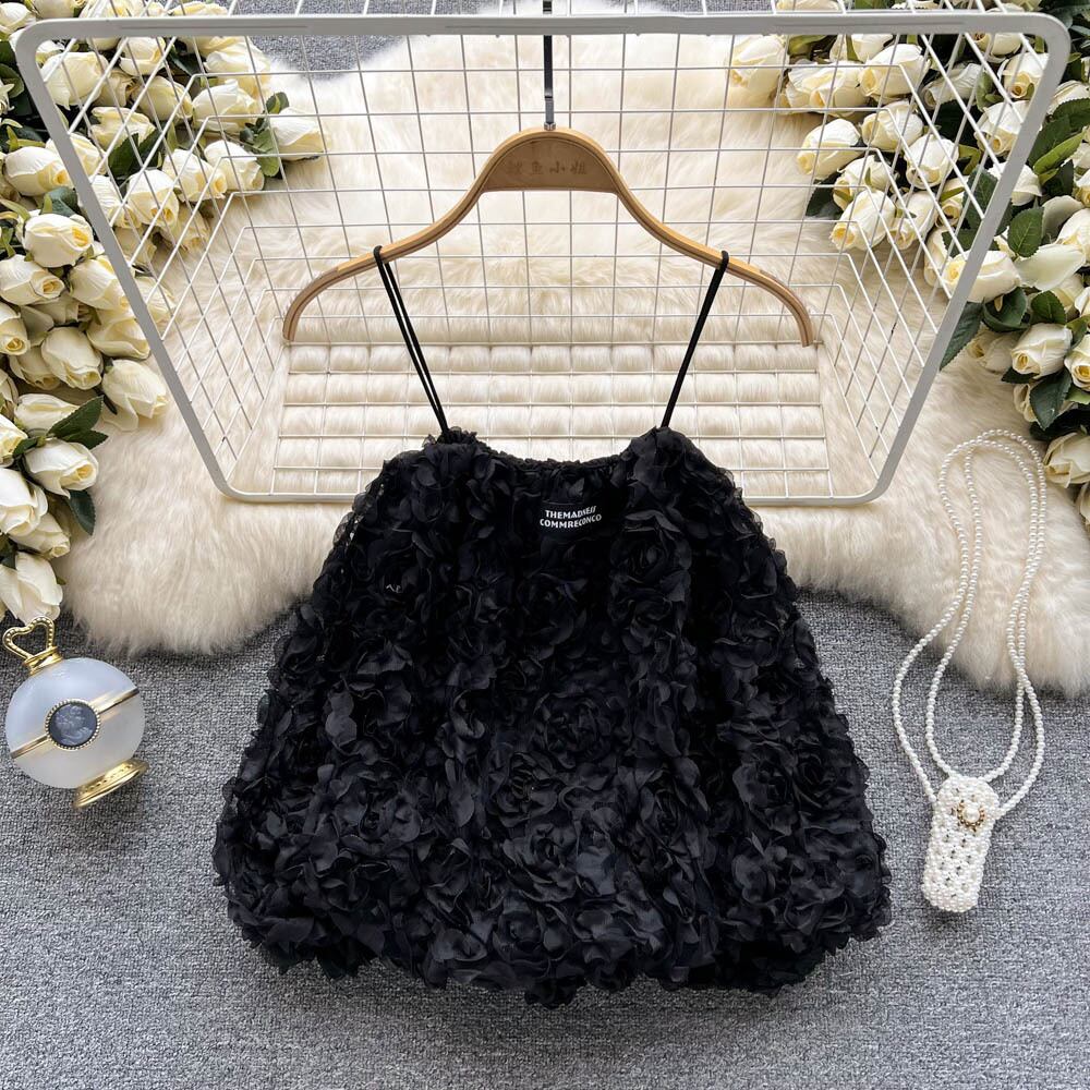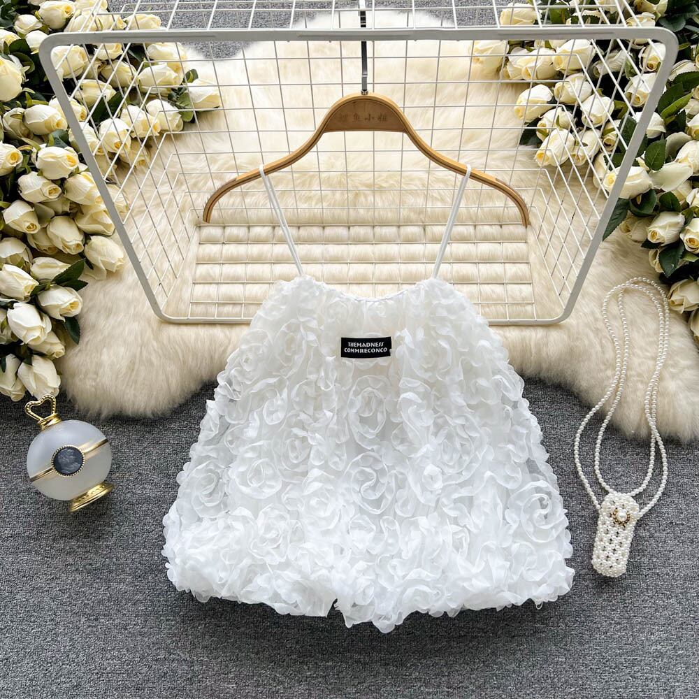 純粋な欲望風セクシーなオフショルダーホットガールキャミソール女性フラワーメッシュデザインルーズで薄い気質トップトレンディ フラワーデザイン lyxaj12900510889