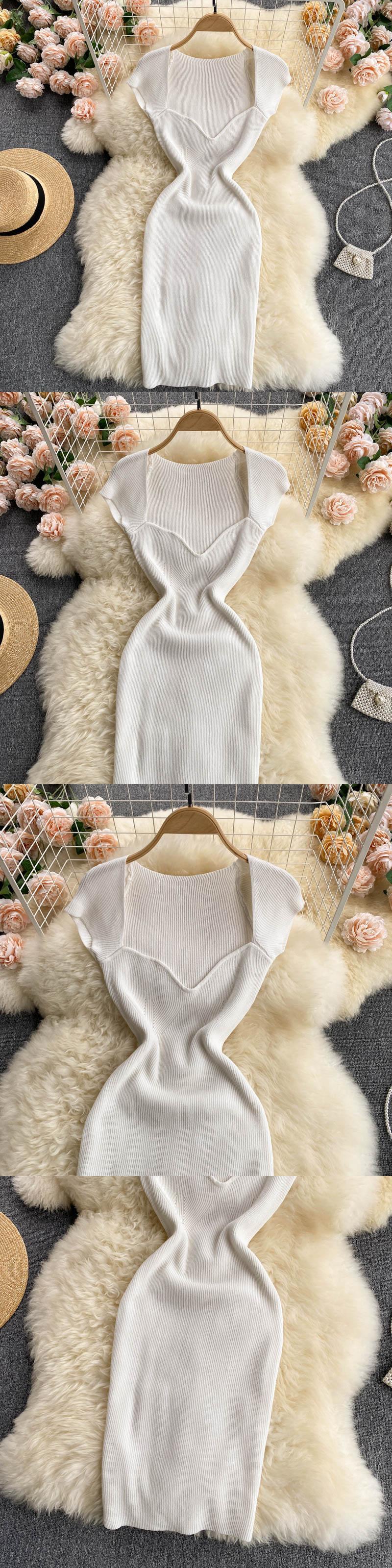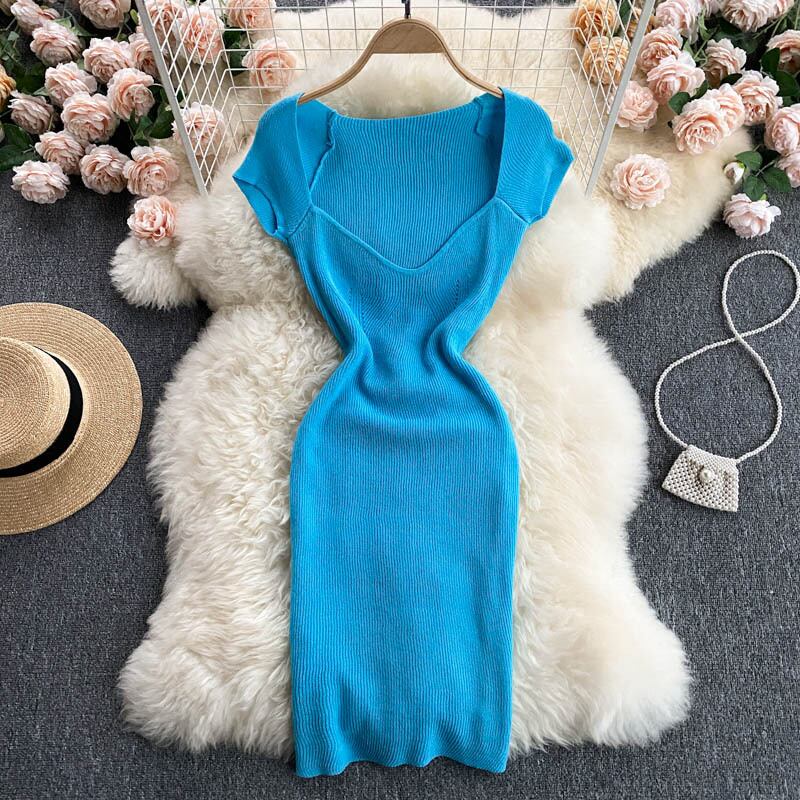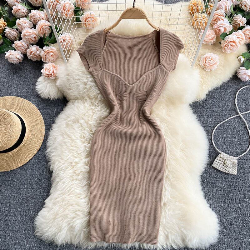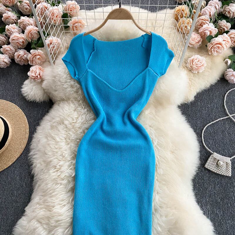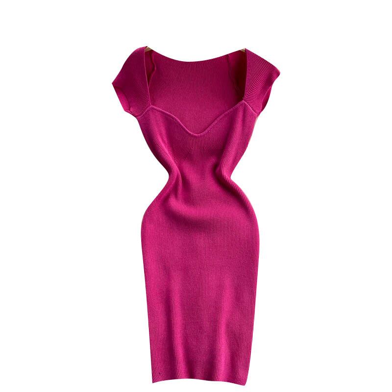 ネット赤揚げストリートサマードレス女性の陰謀襟骨セクシーな低襟はウエストとヒップの伸縮性のあるニット半袖ドレスの女性を示しています レッド エラスティック 夏物 lyxaj41922104390