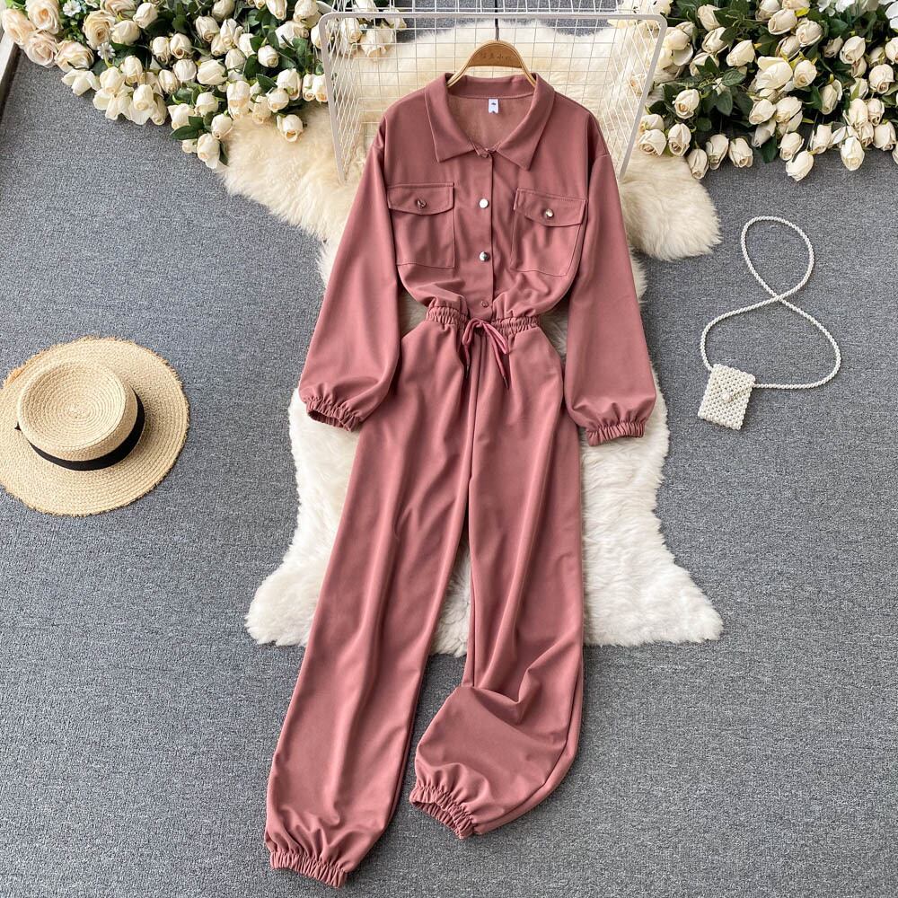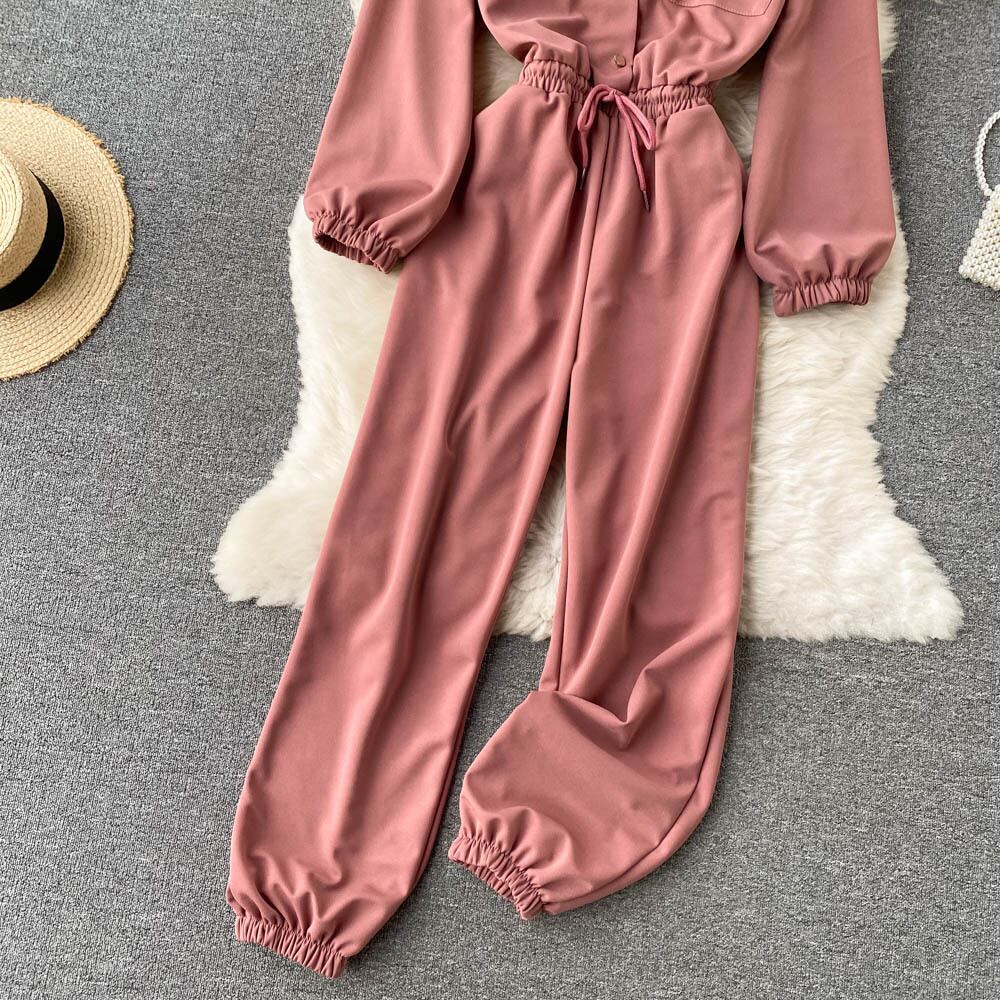香港スタイルのレトロなツーリングラペルシングルブレストジャンプスーツ気質ウエストオールマッチ無地レギンスハイエンドジャンプスーツ ソリッドカラー lyxaj90552209368