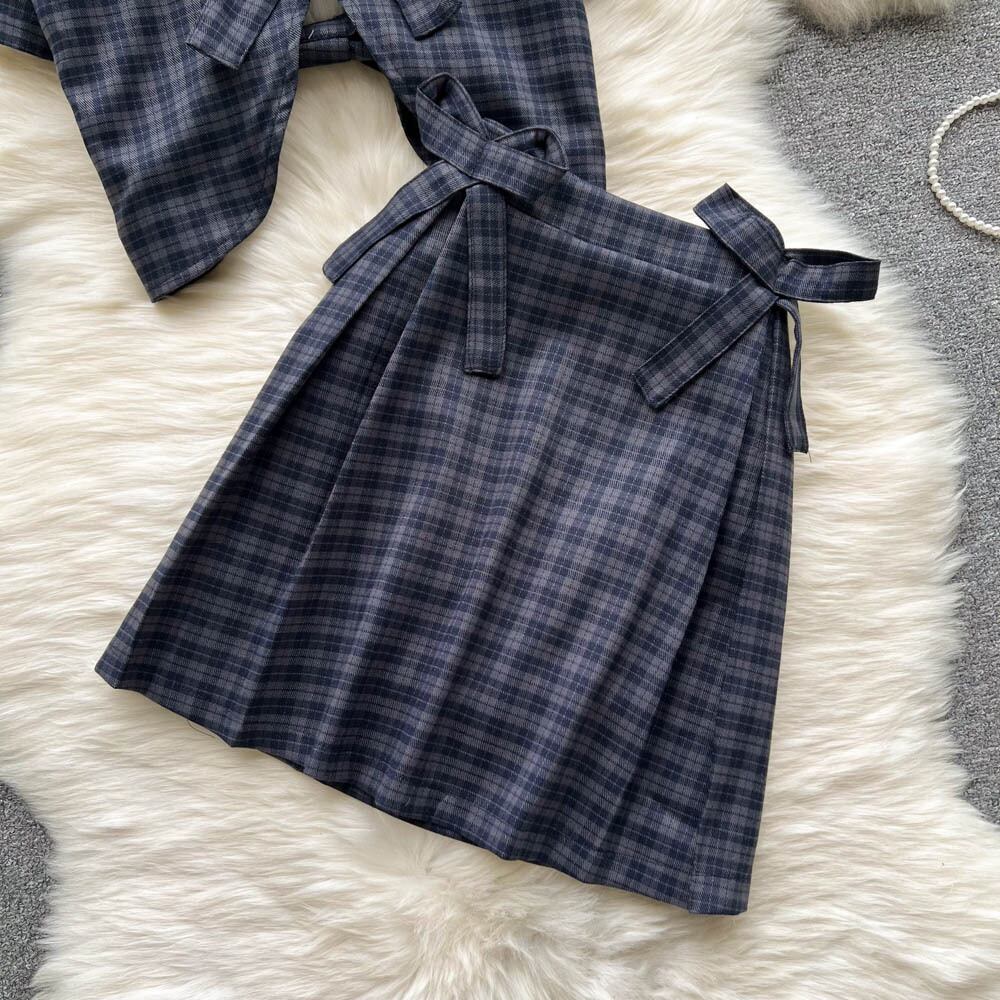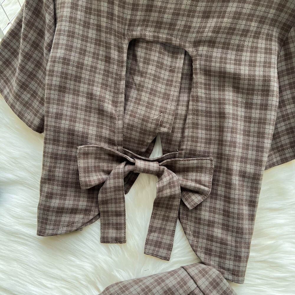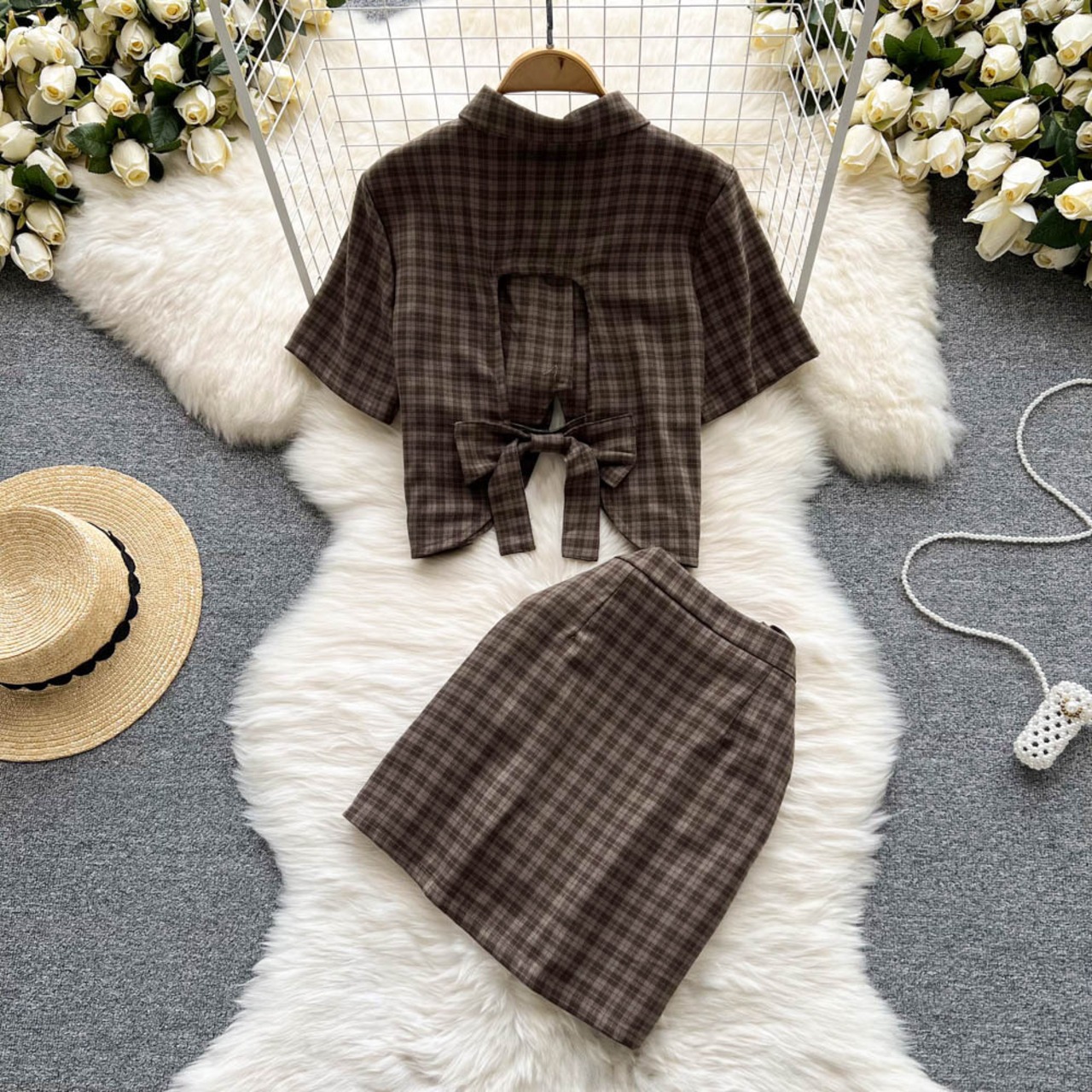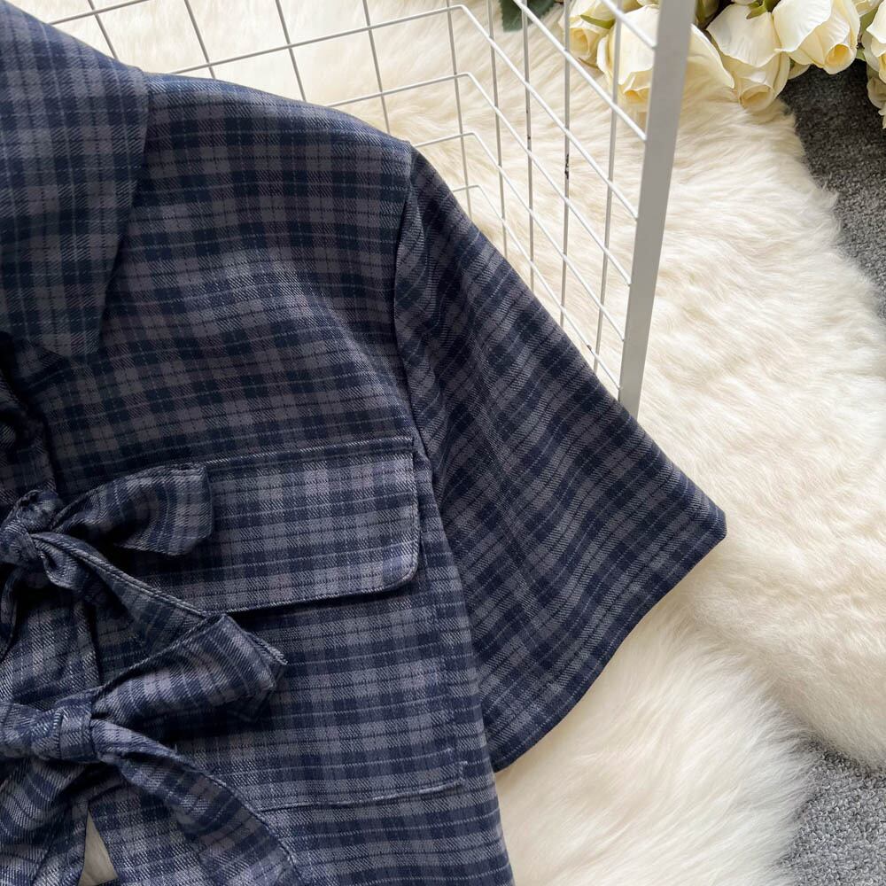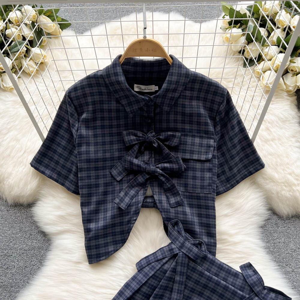甘い弓格子縞のシャツスーツ女性の夏の新しい日本の大学スタイルのプリーツショートスカートホットガールツーピーススーツ リボン 大人ガーリー スウィート キュート カジュアル サマー 夏物 lyxaj52396455922