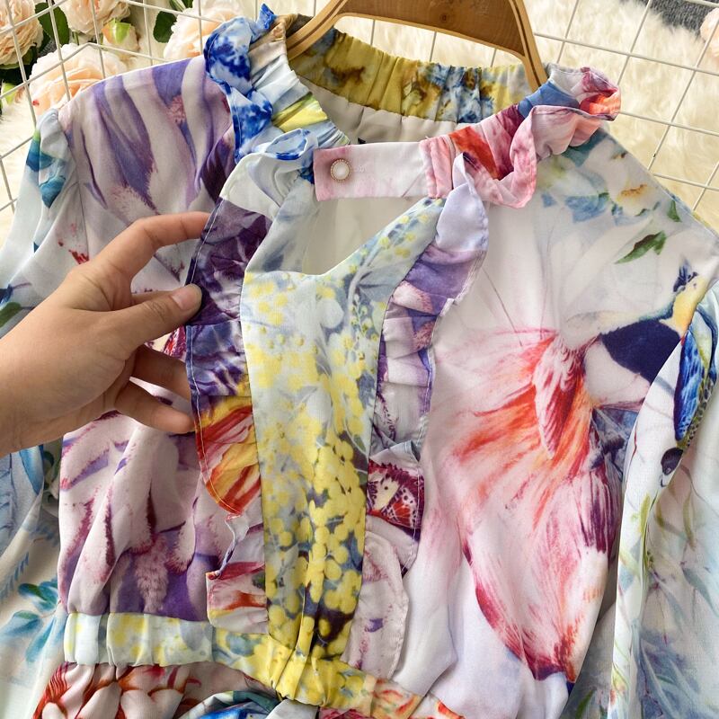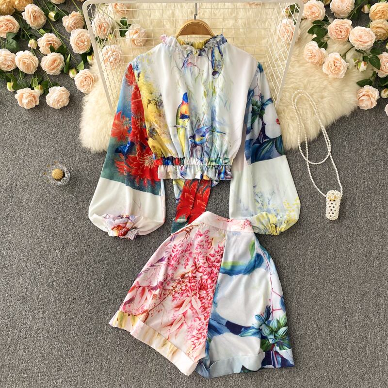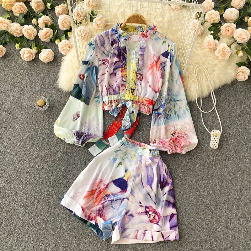 ホリデースタイルプリント2022ニュースーツレディース春夏デザインセンスレースアップトップハイウエストショーツツーピースタイド スプリング 春物 サマー 夏物 ブルマー lyxaj5192576819