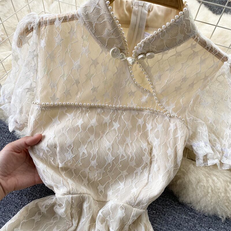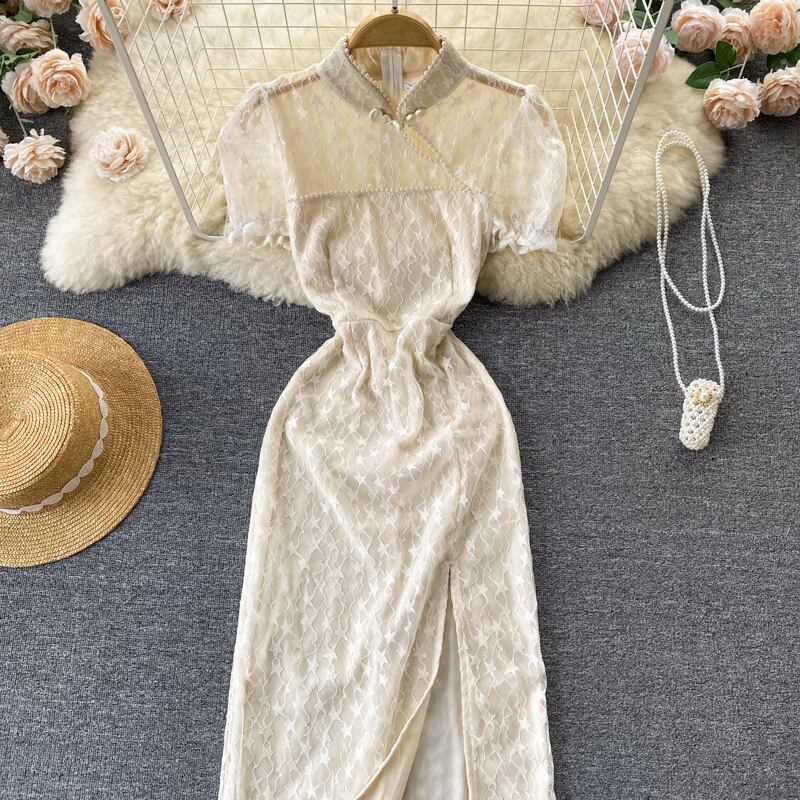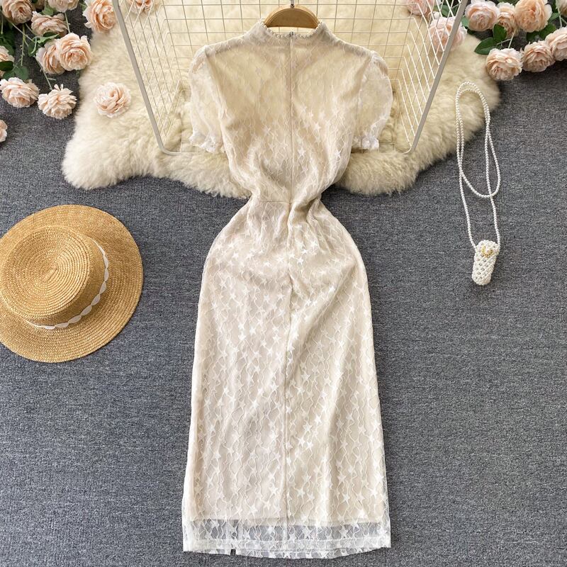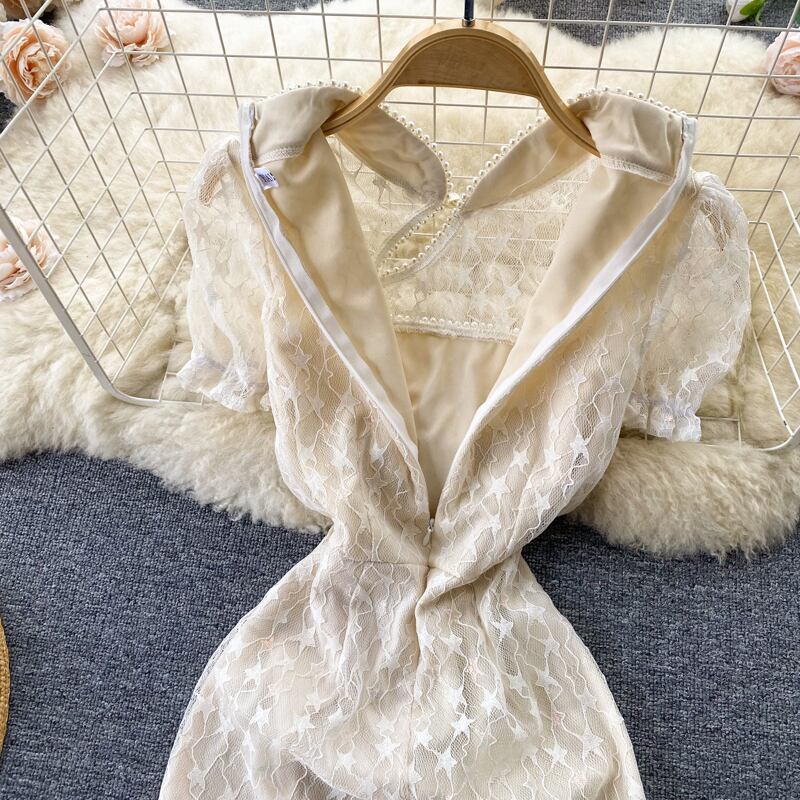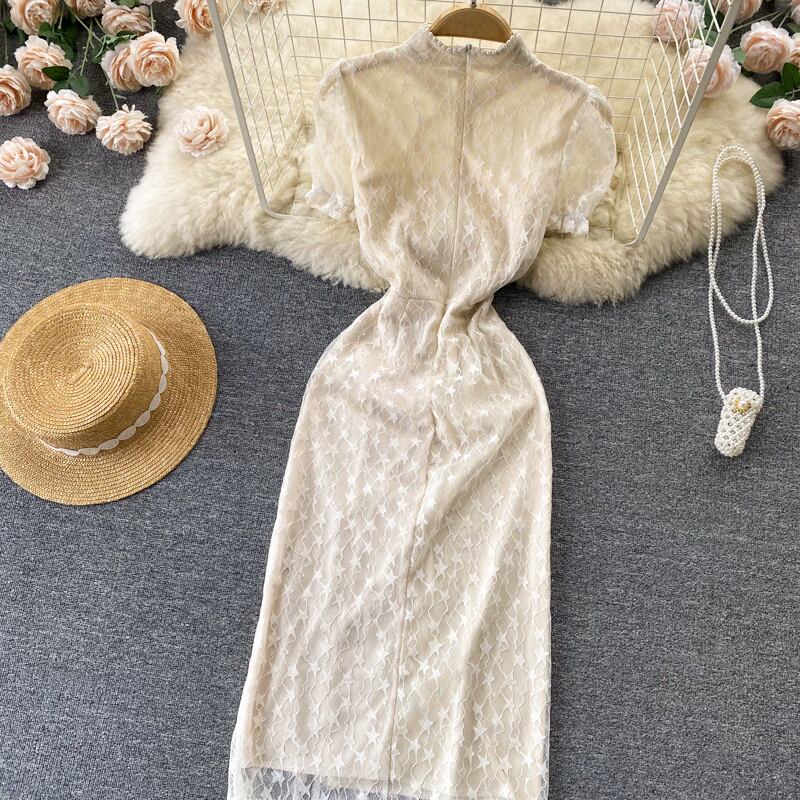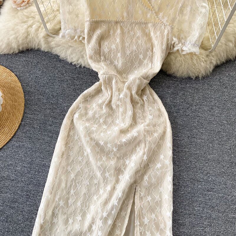 フランスの気質甘い初恋妖精のスカート夏のレース刺繡ウエスト薄い半袖ドレススプリットロングスカート 刺繍 大人ガーリー スウィート キュート カジュアル サマー 夏物 lyxaj24627635784