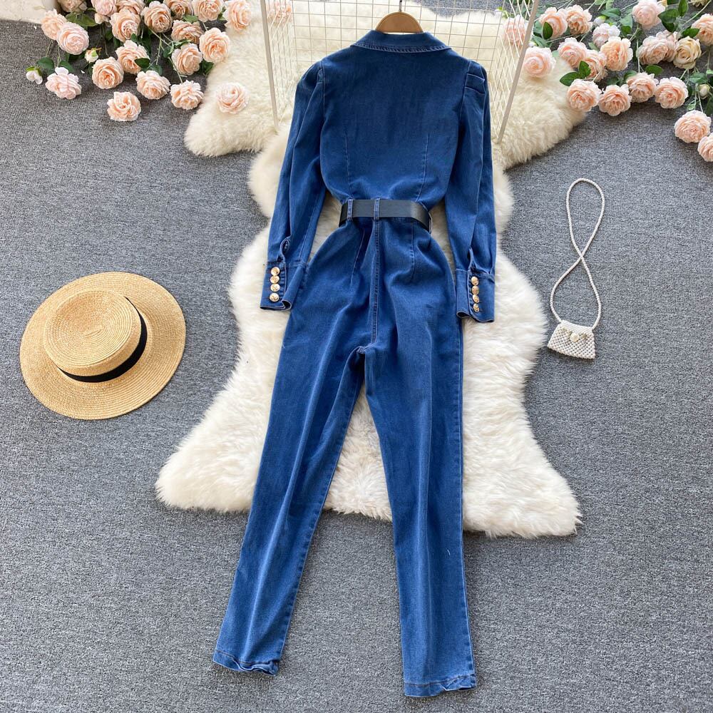 2022年春の新作レトロワイドレッグパンツカジュアルツーリングスタイルワンピースパンツ長袖ポケットルーズジーンズ ロング スプリング 春物 lyxaj30036705942