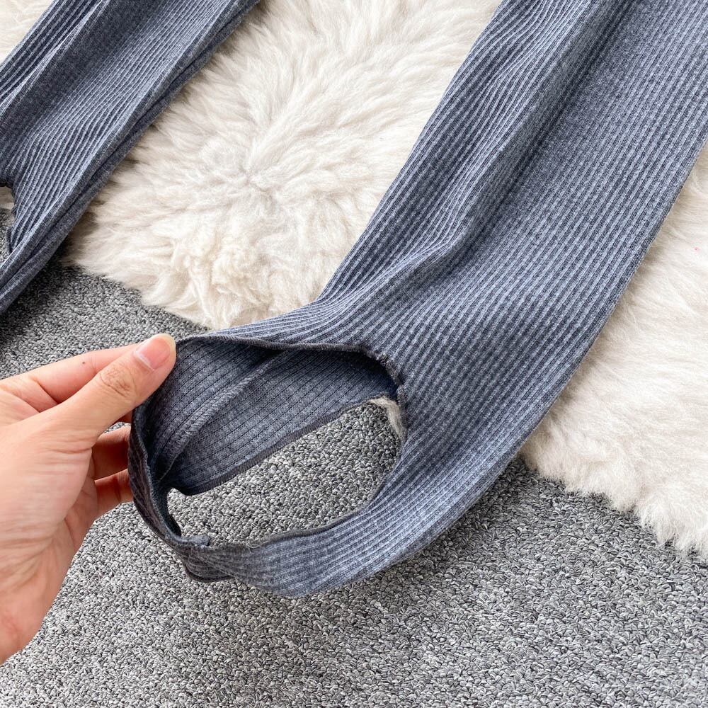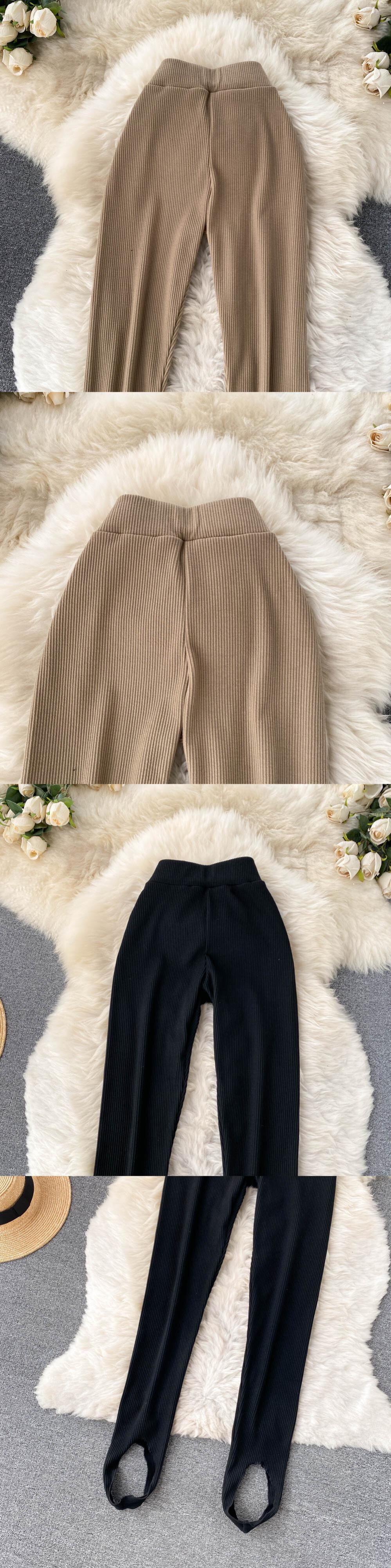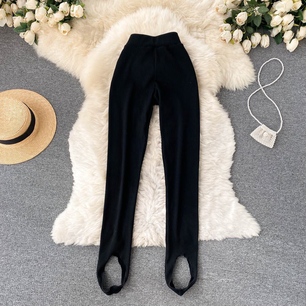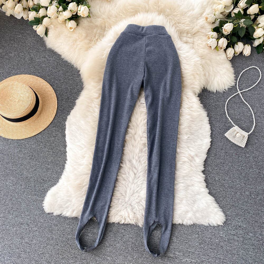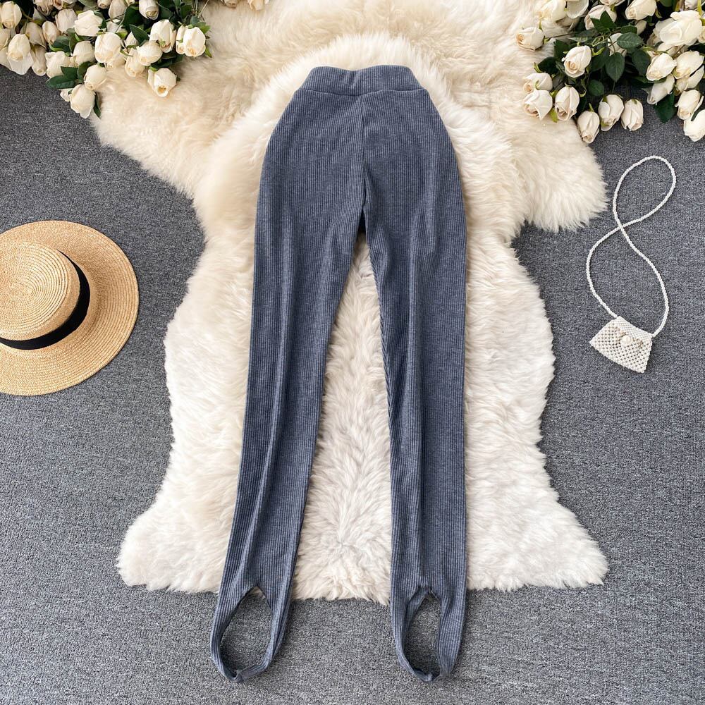2021年秋新作ハイウエストスリムフットレギンスニッチなデザイン感のある女性用アウター用スリムフィットフットステッピングパンツの韓国版 オータム 秋物 lyxaj78837749488