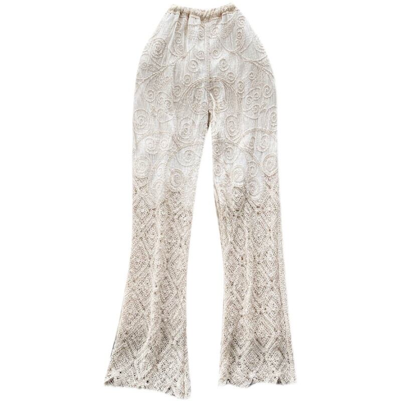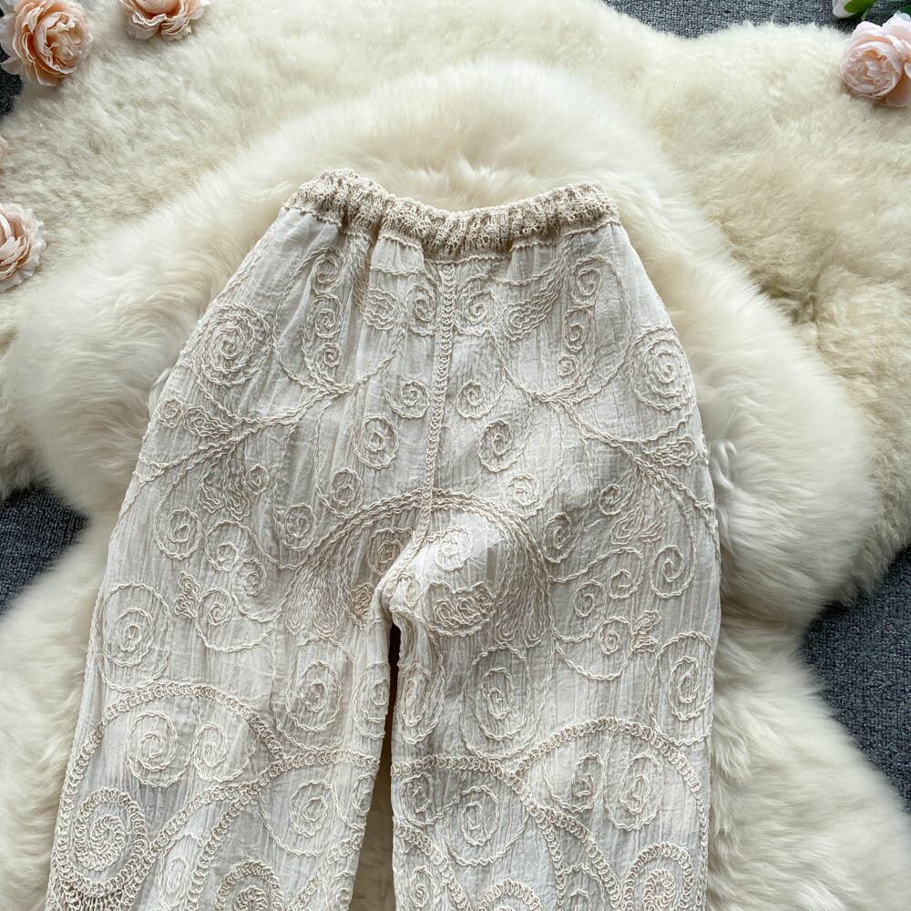 中空かぎ針編みマイクロフレアパンツスリムハイウエストレースメッシュ刺しゅうデザインフレンチワイドレッグパンツカジュアルパンツ ハイウェスト レッド 刺繍 ワイドパンツ lyxaj91229962519