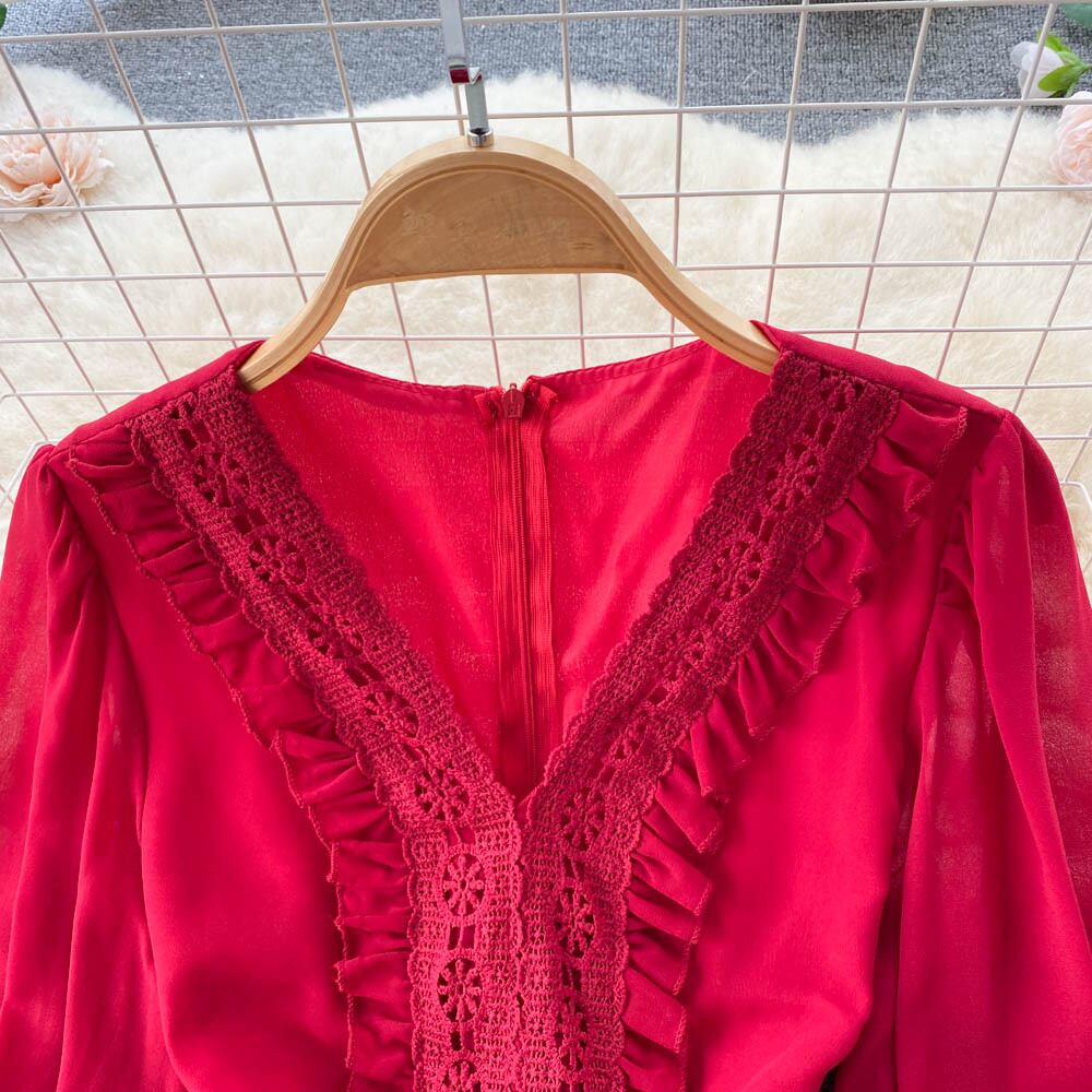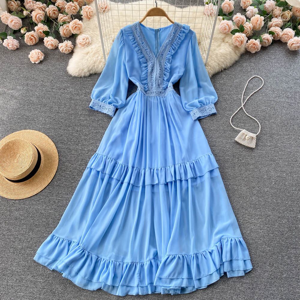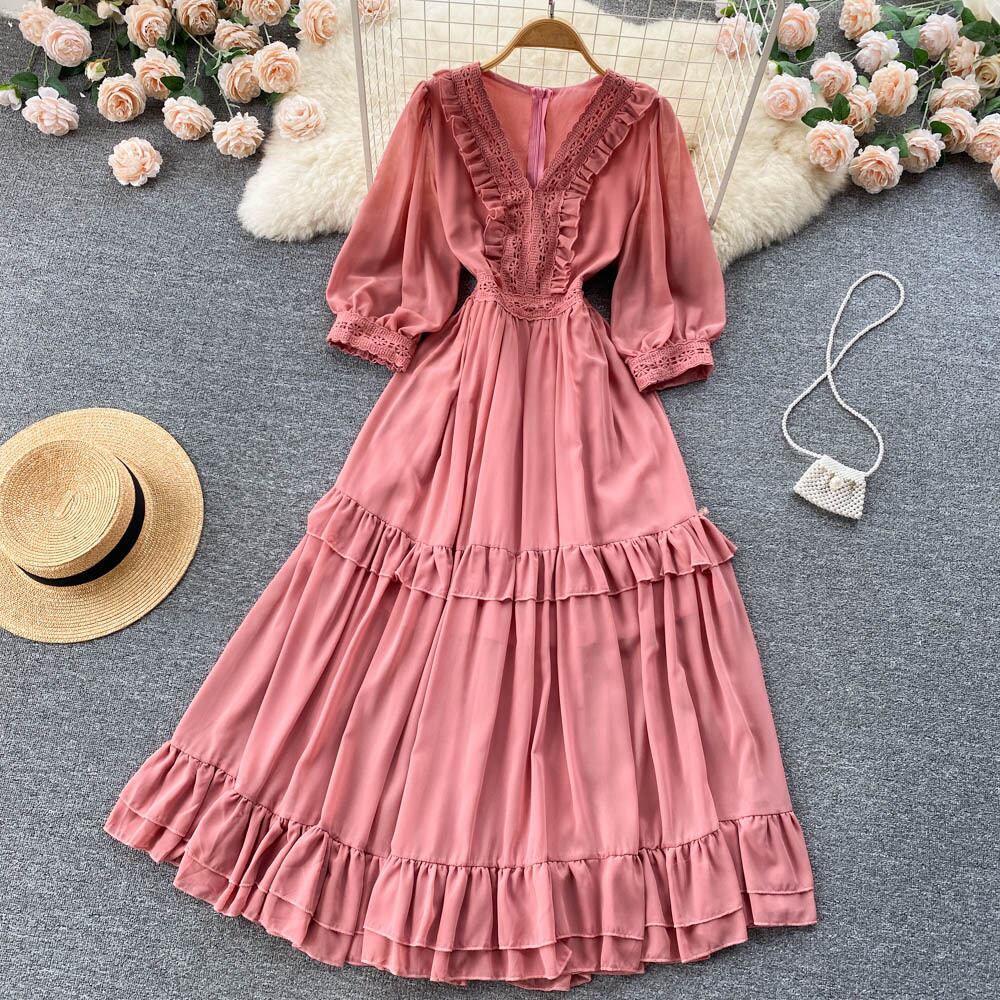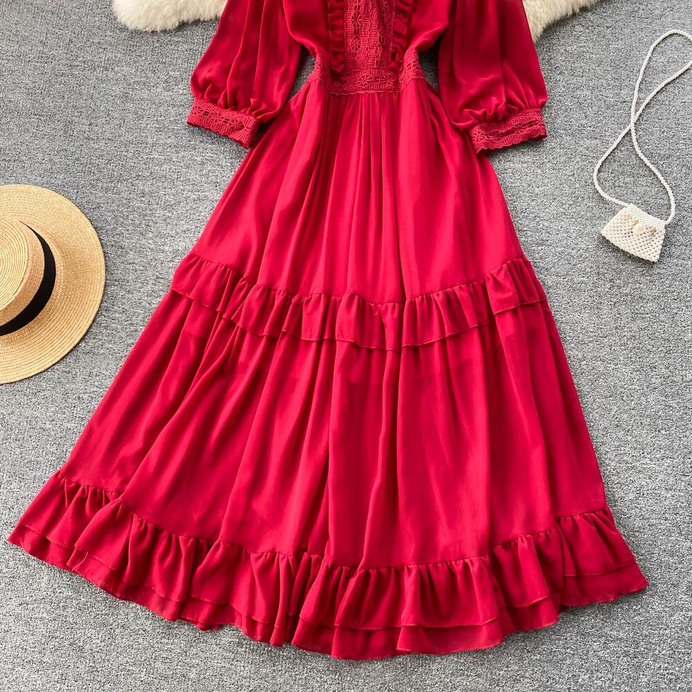 夏の新しい菌エッジルーズで薄い気質フレンチロングスカートレトロベルフラワースカートヘップバーンプリーツドレス サマー 夏物 フラワーデザイン lyxaj51962753319