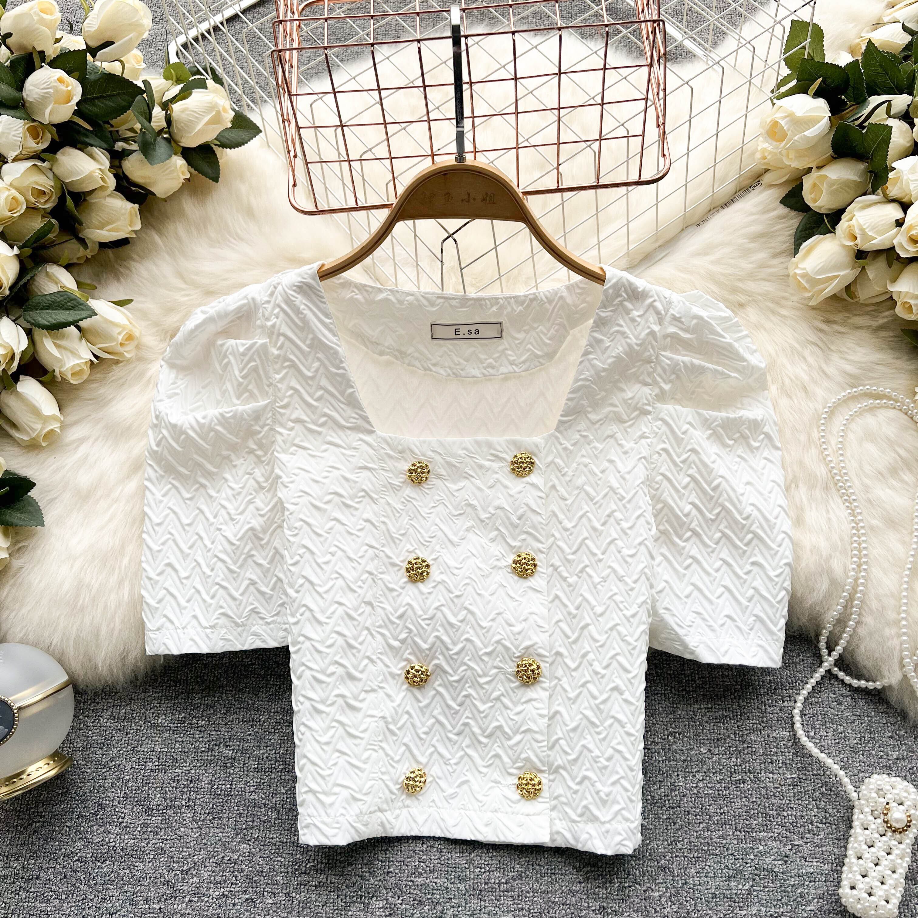 フランスのスモールスクエアカラーショートトップ女性夏韓国ジャカードバブル半袖ダブルブレスト薄手のシャツスモールジャケット ハーフスリーブ サマー 夏物 スクウェア lyxaj37020405643
