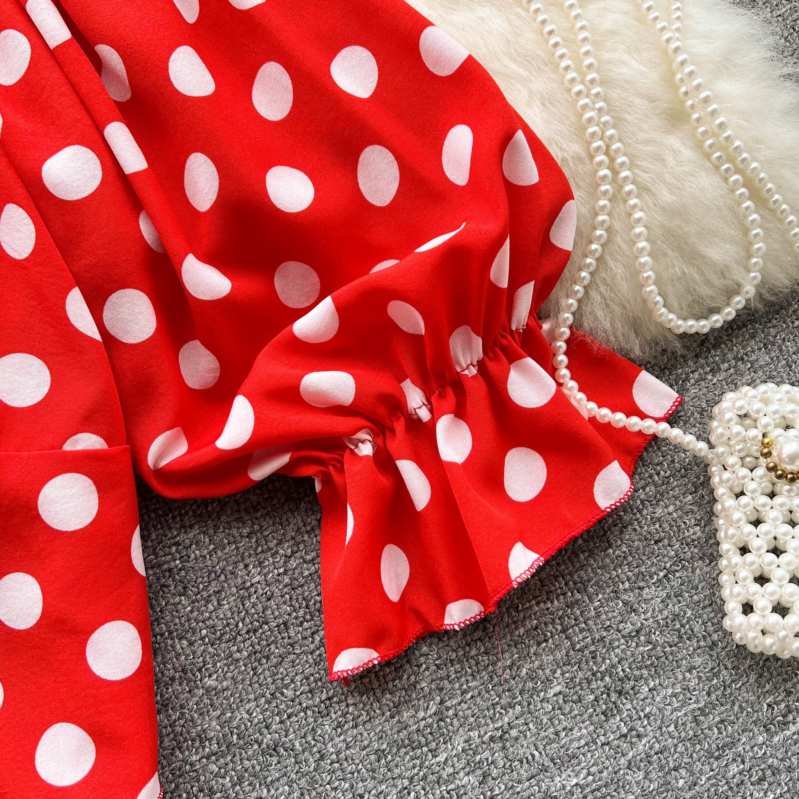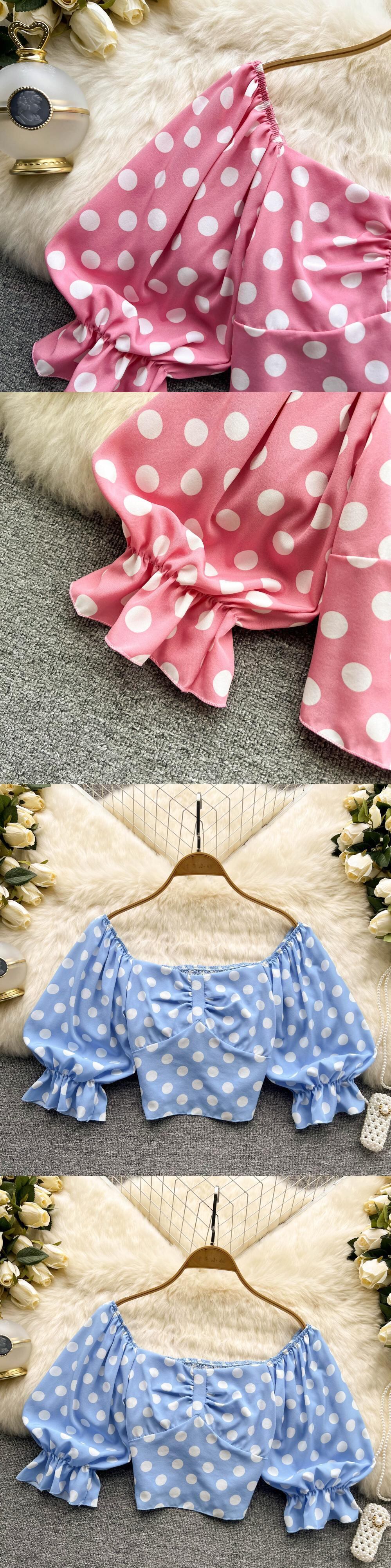 2022年夏の新しいスクエアネックバブル半袖プリーツ水玉ショートシフォンシャツレディースシックで薄いトップ サマー 夏物 スクウェア lyxaj86606541187