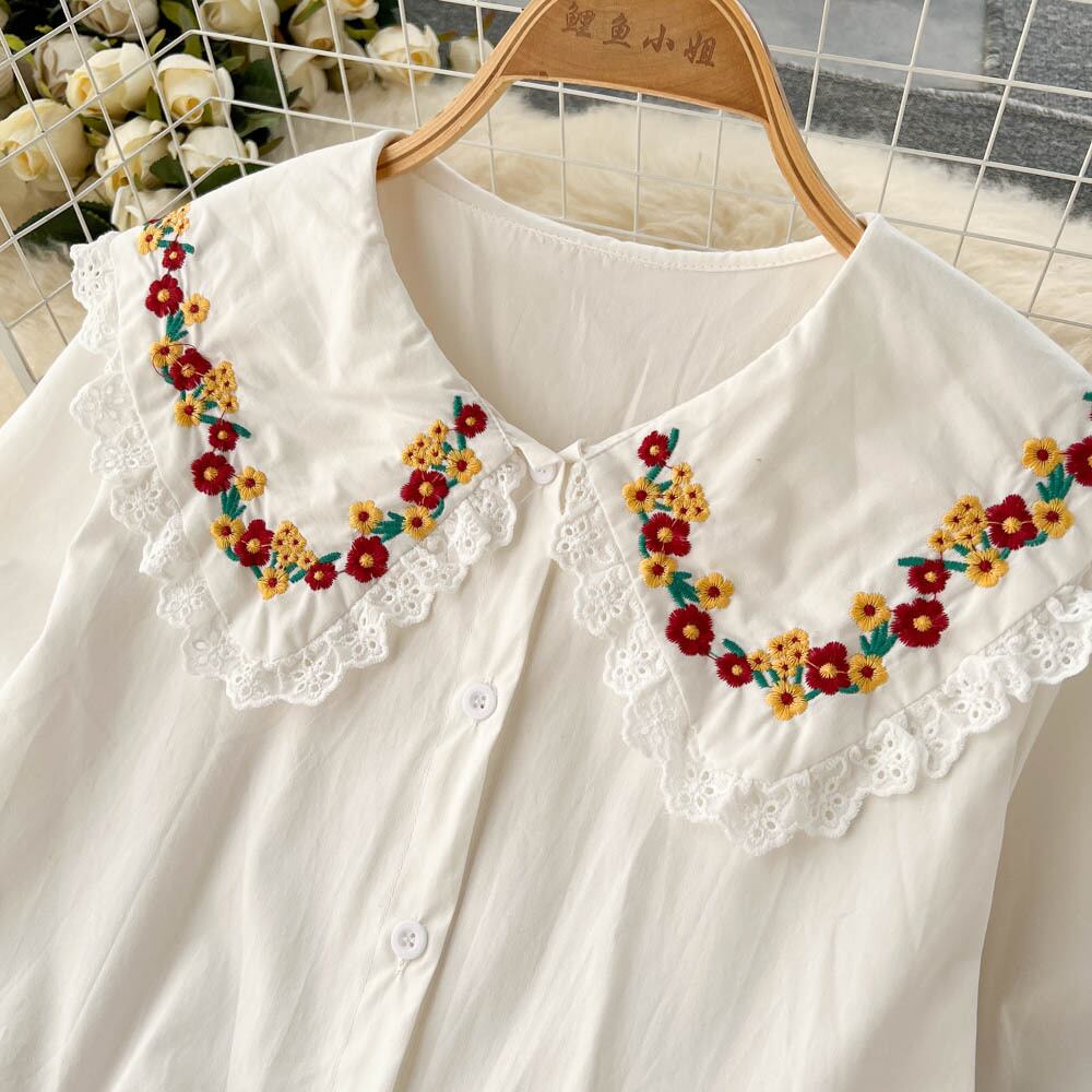 文学的な綿とリネンの泡半袖ルーズフォールド人形の襟のドレス女性の夏の新しいフレンチスタイルの薄いスカートの潮 コットン サマー 夏物 lyxaj74814039920