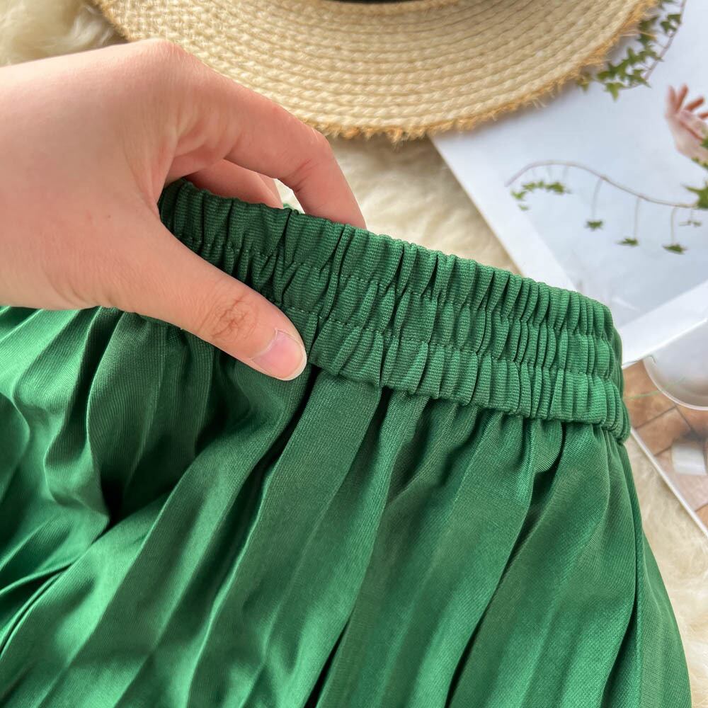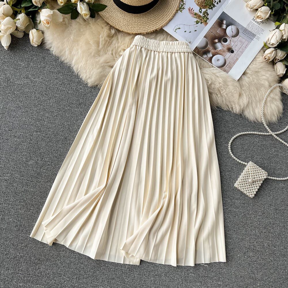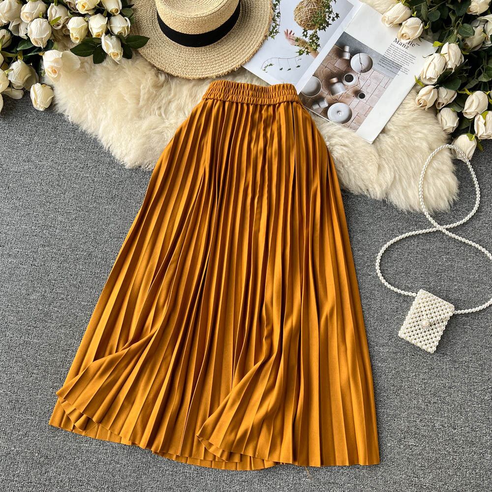2022年春夏新作イン韓国版ドレープオールマッチ無地プリーツハイウエストスリムミドル丈シンプルスカート スプリング 春物 サマー 夏物 ソリッドカラー lyxaj46297485701
