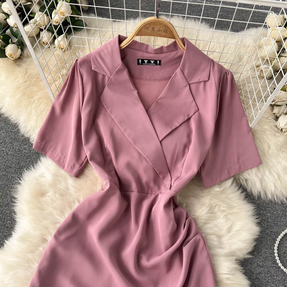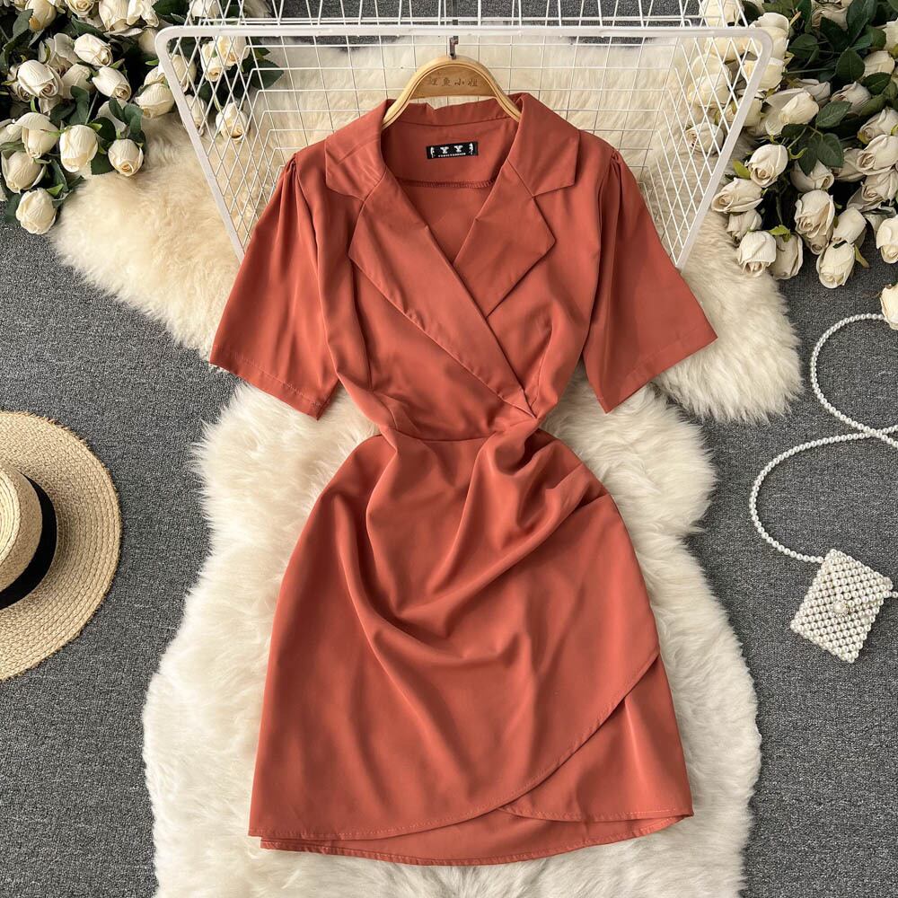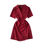 軽くておなじみの気質夏新デザインセンス小柄不規則折りウエスト薄手半袖セクシーワンピース サマー 夏物 lyxaj36161851227