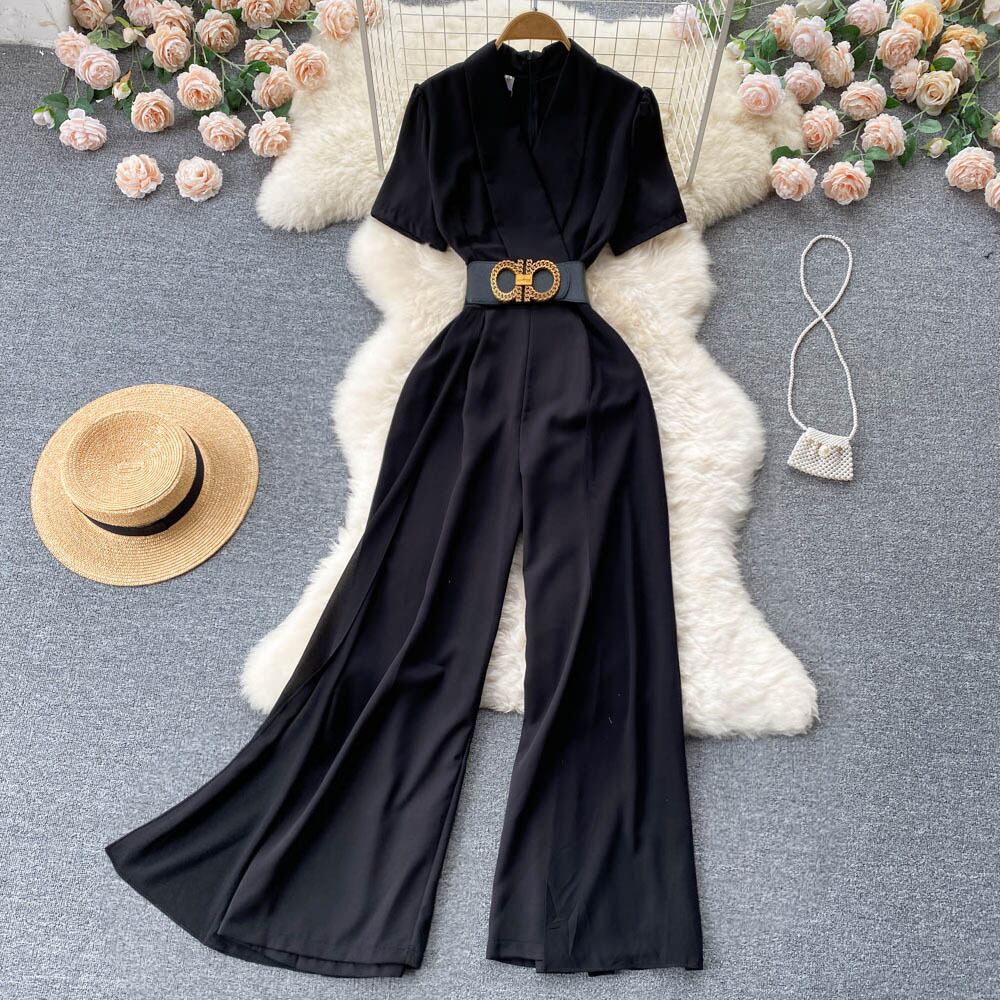 ヨーロッパとアメリカンスタイルのジャンプスーツの女性の2022年春と夏の新しい女性Xiaoxiangスタイルのハイエンドセンスのドレープワイドレッグパンツパンツ スプリング 春物 サマー 夏物 ヨーロピアン lyxaj76909566552