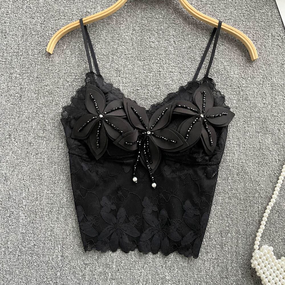 春の新作スウィート気質3次元花刺繡レースベストサスペンダーレディーススリム美しいバックトップストレンディ 刺繍 大人ガーリー キュート カジュアル スプリング 春物 フラワーデザイン lyxaj84242554892