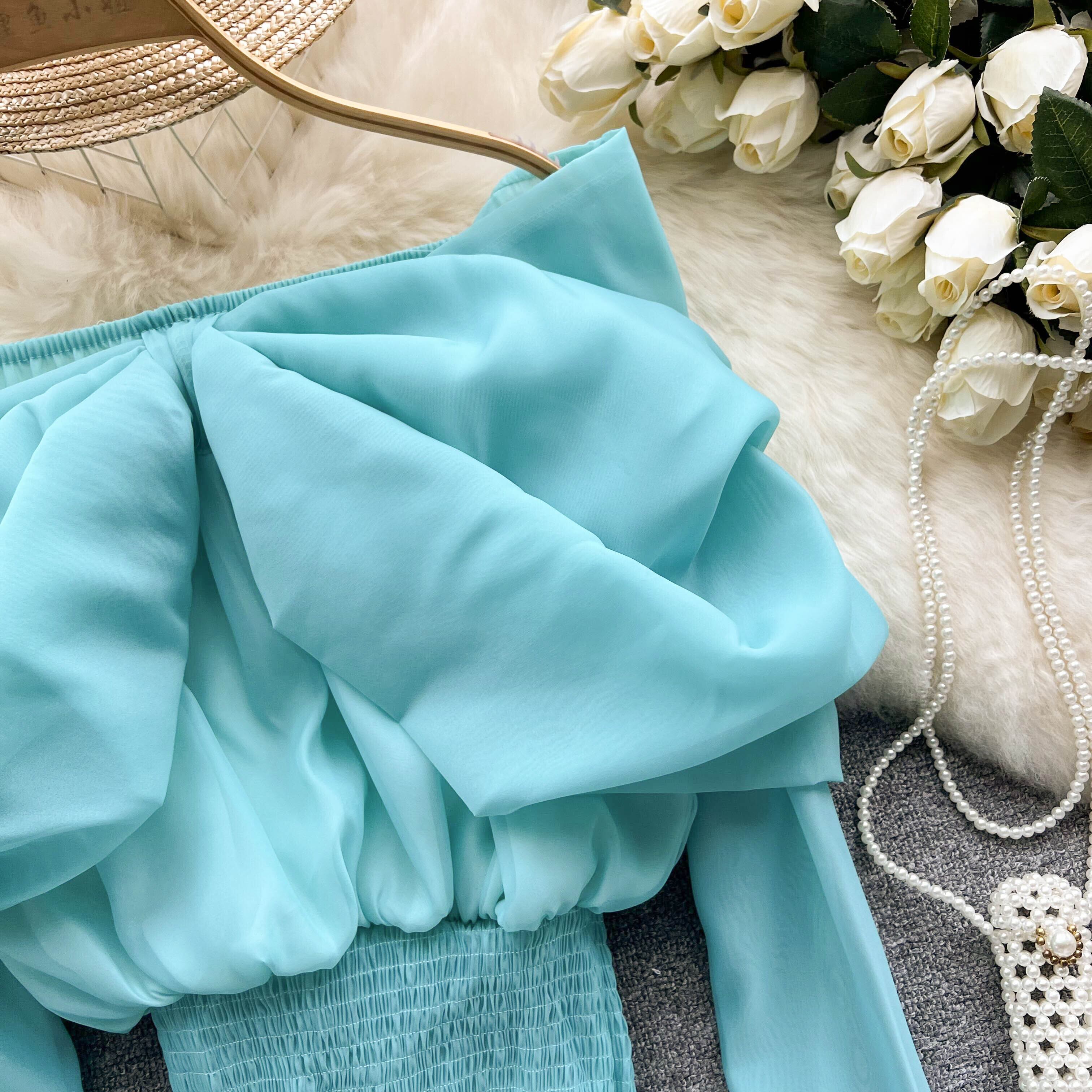 ボウノットワンショルダーシャツレディースデザインセンスニッチ春新作半袖長袖ウエストプリーツ薄手トップ ロング スプリング 春物 lyxaj86892014050