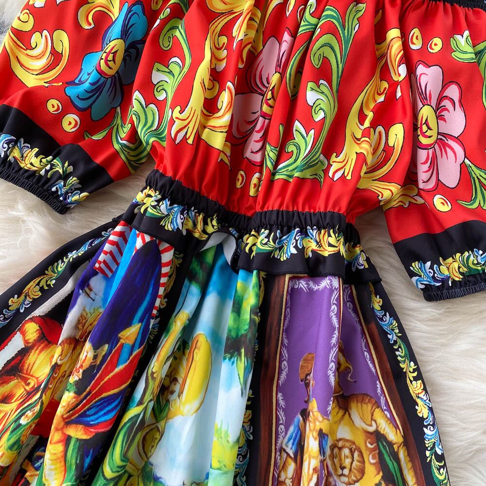 コートレトロドレスワンショルダー気質ウエストスリミングポジショニングプリントデザインセンスフェアリーバケーションサスペンダースカート lyxaj58701339742