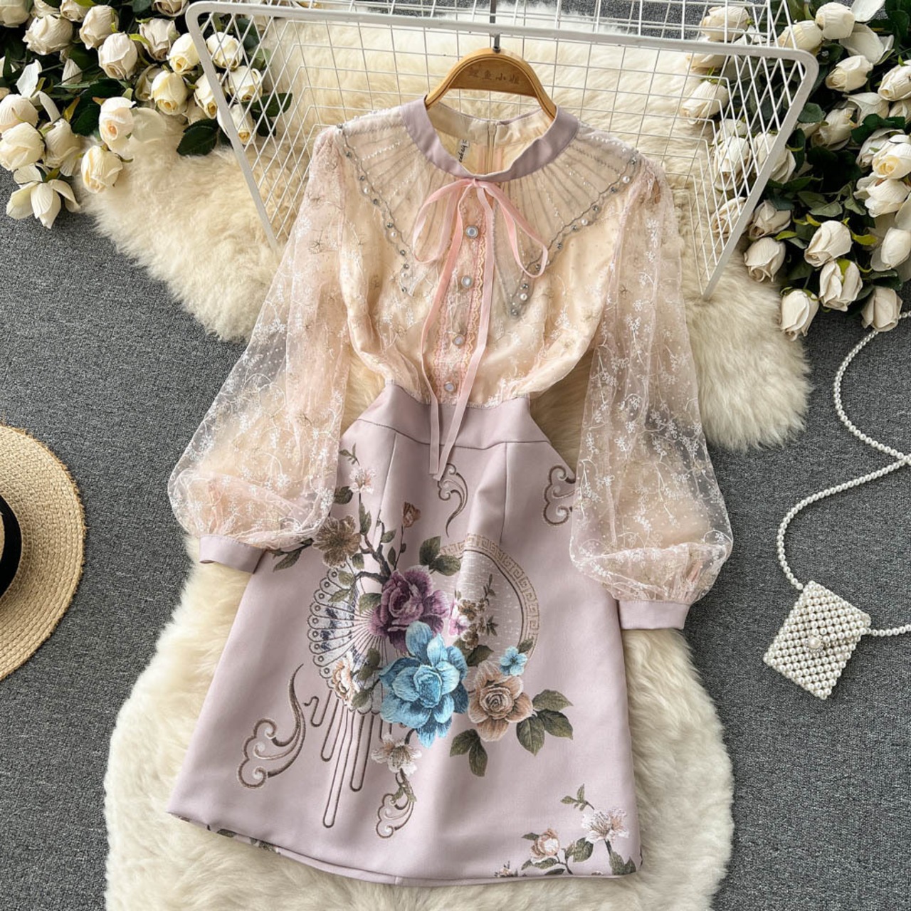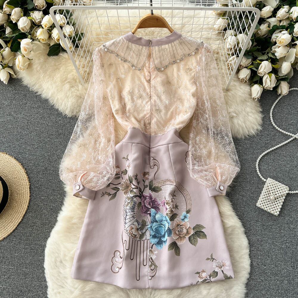Xiaoxiangfeng重工業ビーズドレス2022春と夏の新しいフランスの女性エレガントな小さなレースのスカートトレンディ スプリング 春物 サマー 夏物 lyxaj61126885854