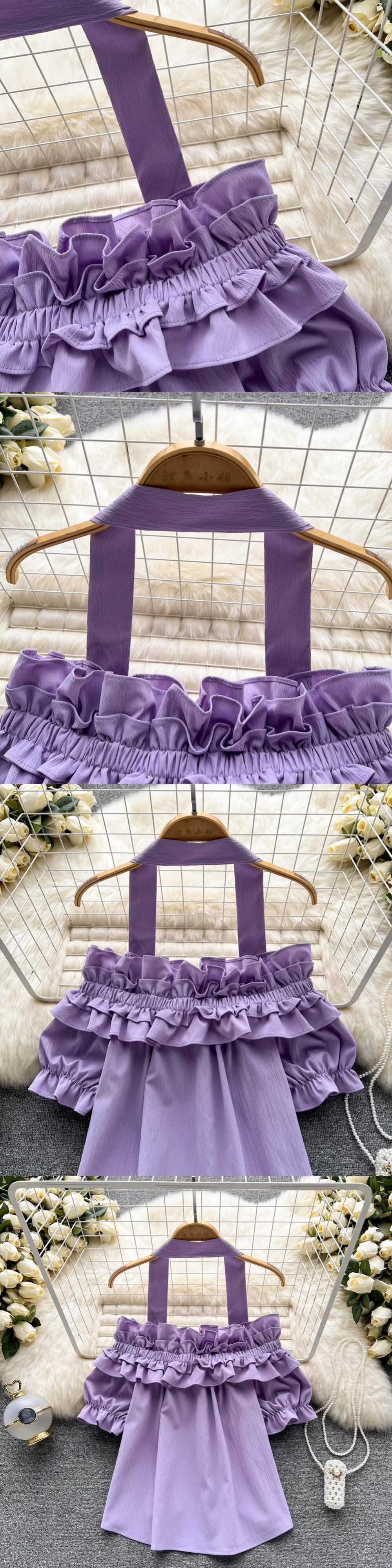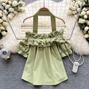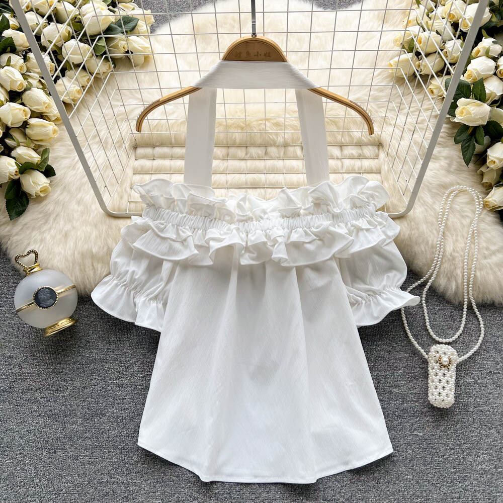セクシーな純粋な欲望の風ホルターベストスリング夏の新しいスタイルのアウターウェアルーズホローワンショルダーオープンバック鎖骨トップ サマー 夏物 ピュア lyxaj53168719336
