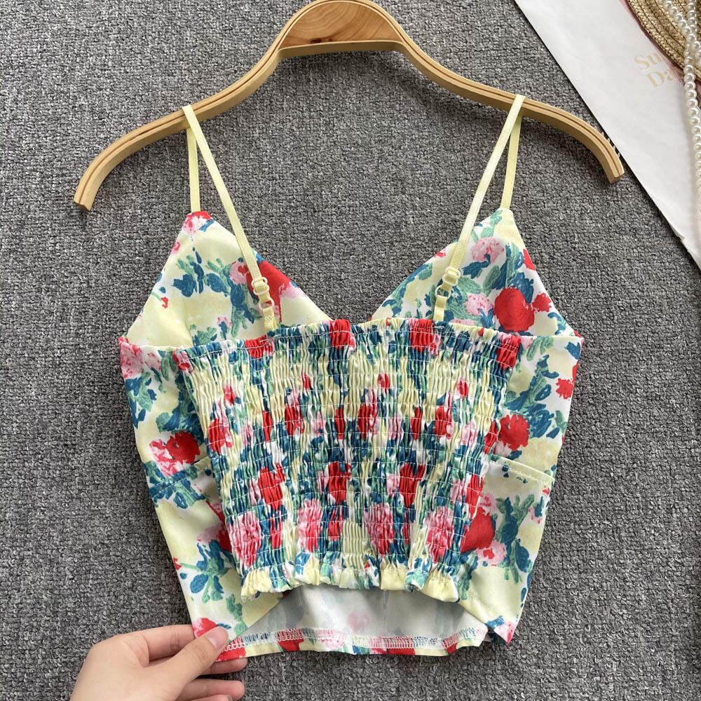 韓国語版2022年春夏新ホリデースタイルオールマッチカジュアルレトロショートシャツシーサイドフローラルキャミソール スプリング 春物 サマー 夏物 花柄 lyxaj33251043109