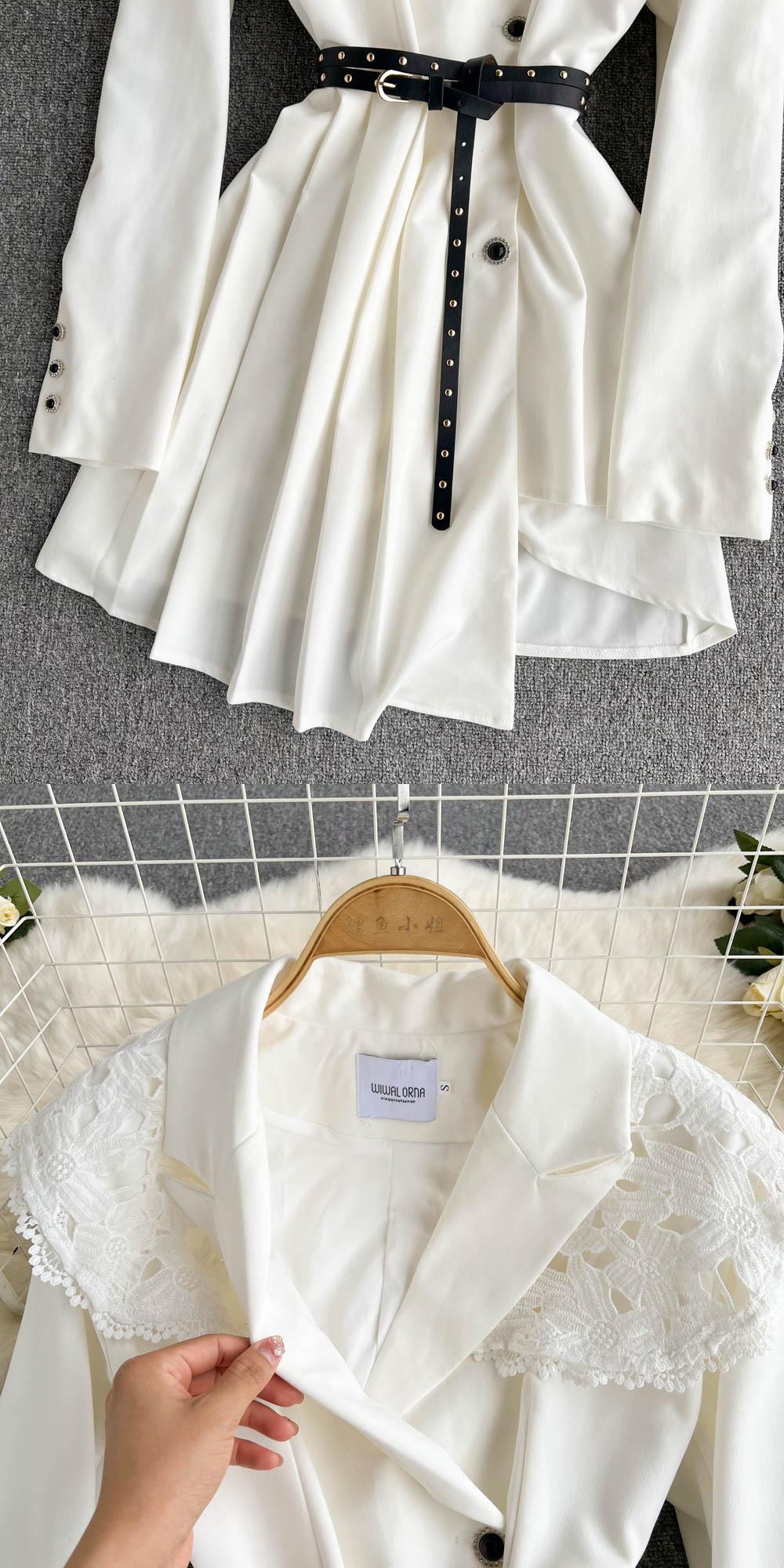 レースウエストシングルブレストレースステッチスーツカラーフレンチ気質Aラインスカートのハイコールドロイヤルシスタースタイルドレス lyxaj62369357247