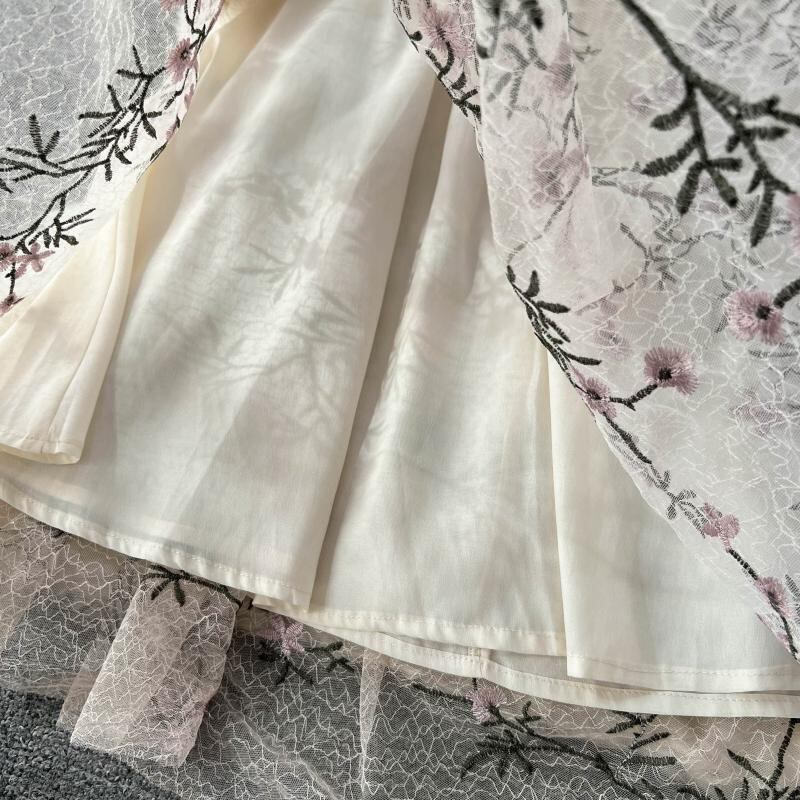デザインセンスニッチなヨーロッパとアメリカの刺繍ドレス女性の2022年春の新しいプリーツウエスト長袖フェアリースカート ロング レッド スプリング 春物 ヨーロピアン lyxaj35480641275