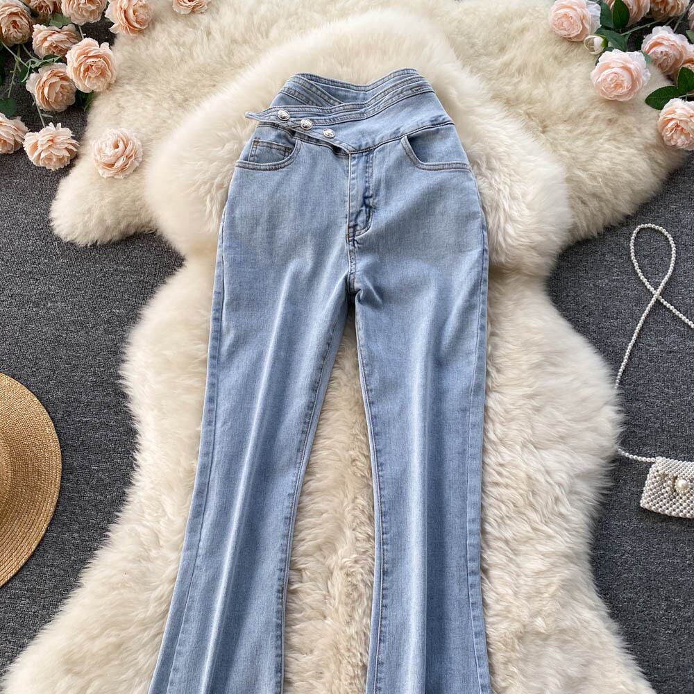 ワイドレッグジーンズレディースナインポイント2022年春夏新作薄手伸縮性スモールハイウエストカジュアルパンツマイクロフレアパンツ ハイウェスト レッド エラスティック スプリング 春物 サマー 夏物 lyxaj14474482322