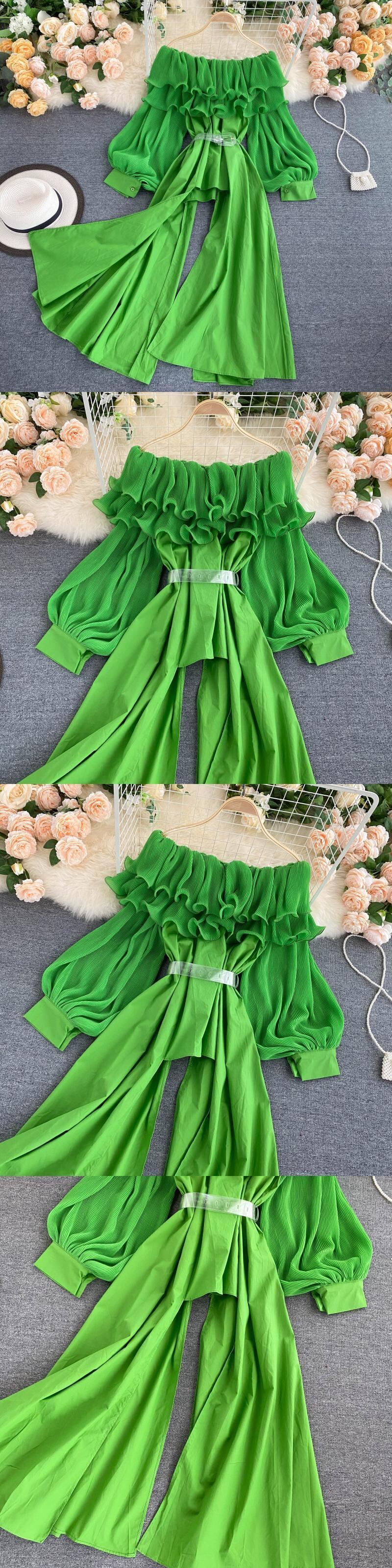ヨーロッパとアメリカのインデザインセンスワンショルダートップ秋の女性のプリーツフリルファッションランタンスリーブシフォンシャツ女性 オータム 秋物 ヨーロピアン lyxaj7490407541